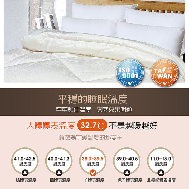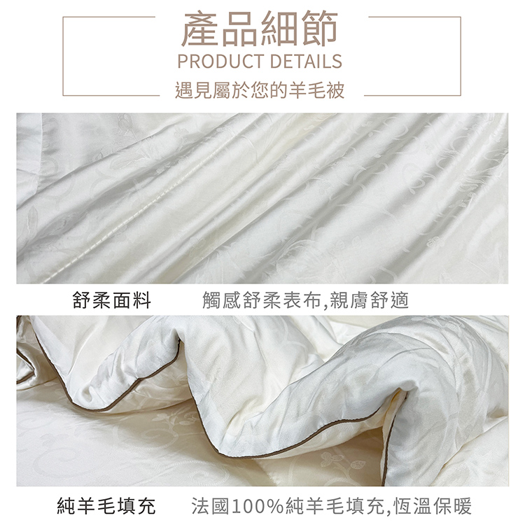 【多利寶寢具】INDIAN_100%純天然法國羊毛被(緹花布)-6*7尺