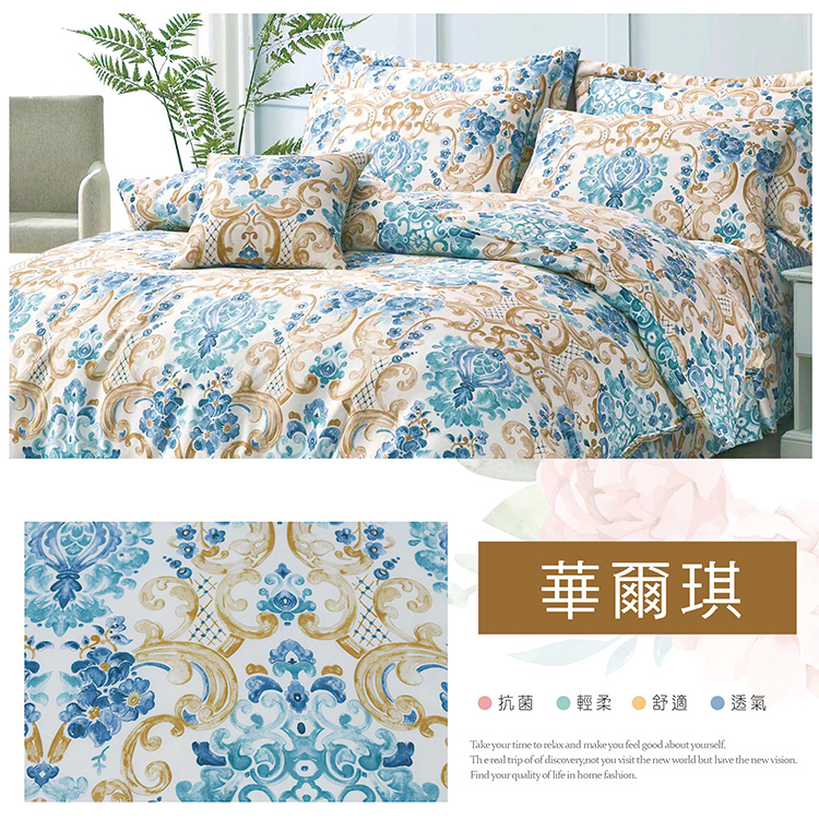 鋪棉兩用被套*1件-6x7尺(182x212cm)床罩*1件-6x6.2尺(182x188cm)枕套*4個 -48x75cm靠墊*1個7件/組