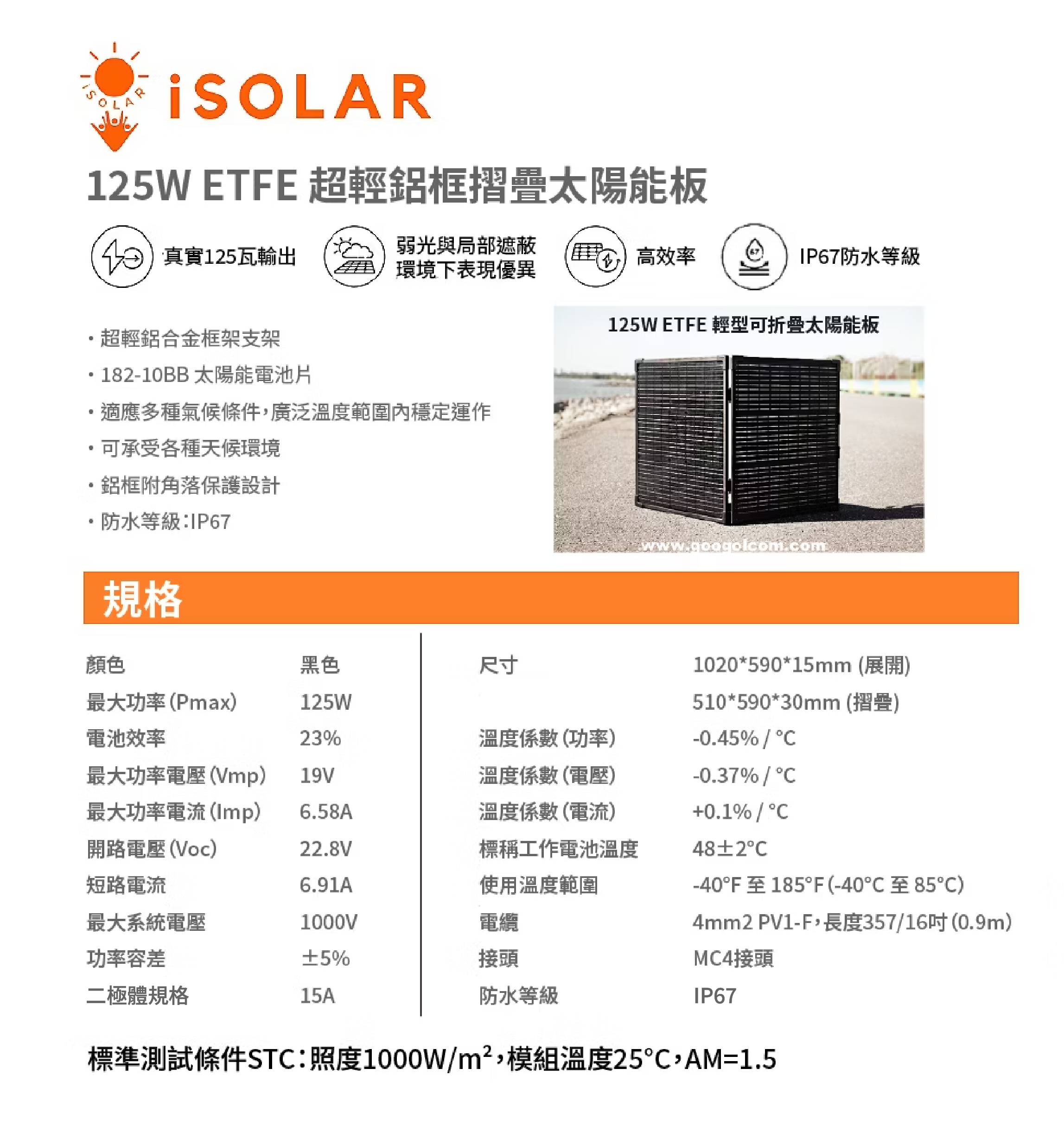 【iSOLAR】125W輕型可折疊太陽能板 輕量 露營 登山 車泊 旅行 戶外充電 太陽能充電板 備用電源 充電器 便攜環保綠能