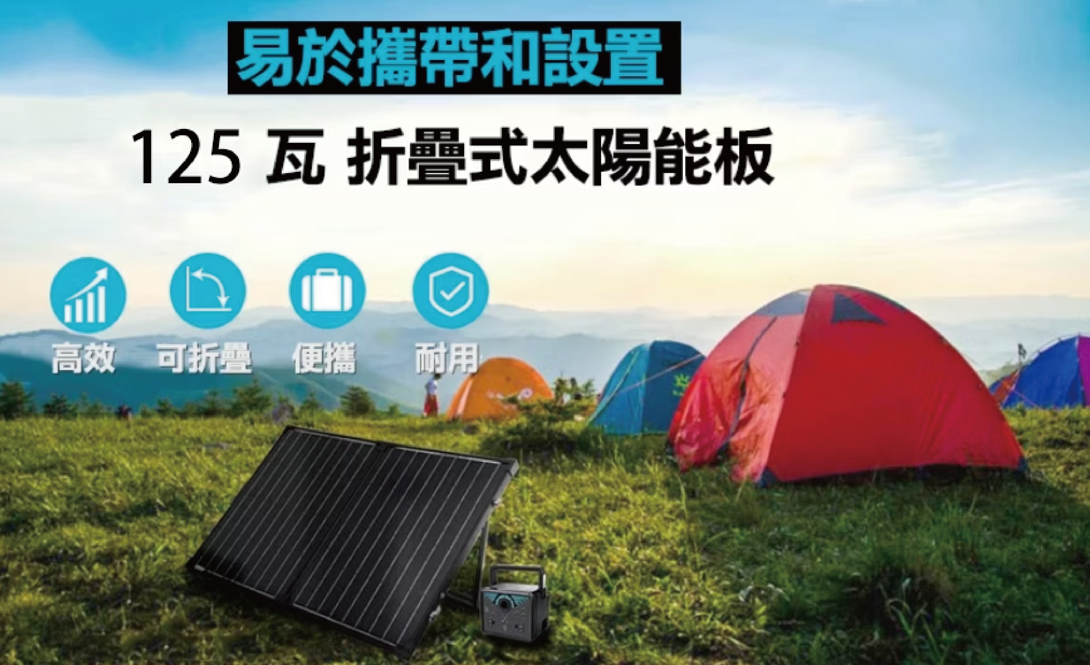 高效能輸出:採用高效率單晶矽太陽能晶片,充電效率極快,憑藉 125 瓦的強大輸出功率,這個太陽能板不僅能夠迅速捕捉陽光並轉化為可用的電力,還支援多片併聯, 縮短充電時間。搭配儲能充電箱您可以輕鬆充電手機、平板電腦、相機、行動電源等各種設備,讓您在戶外也能保持連接。