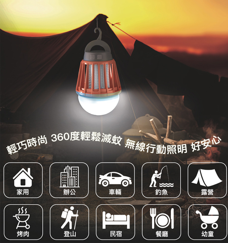 【一燈兩用】:既是高效能捕蚊燈,也是溫馨的三段式LED照明燈。