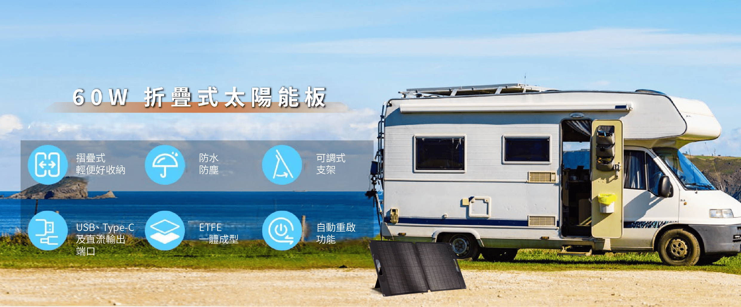 【iSOLAR】60W 輕型可折疊太陽能板 輕量 露營 登山 車泊 旅行 戶外充電 太陽能充電板 備用電源 充電器 便攜環保綠能