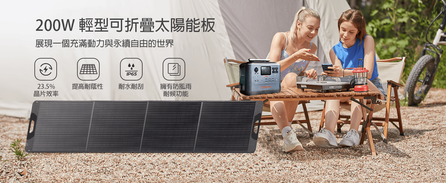 200W 輕型可折疊太陽能板,高效單晶轉換率 23.5%+IP65 防水設計,戶外電力無懼風雨。特價現省 NT$ 1,000! 電力補給從太陽開始,機會不等人!