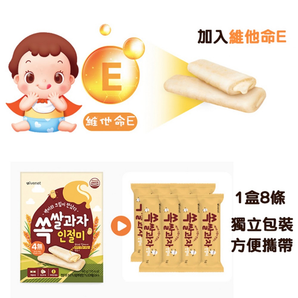 專為寶寶設計的第一口點心!採用 100%國產梗米粉 製成,不含麵粉、人工色素,給孩子最安心、自然的美味選擇。扁長形狀設計,入口即化、好吞嚥,還能幫助訓練手眼協調與抓握能力,是寶寶練習自主進食的好幫手。