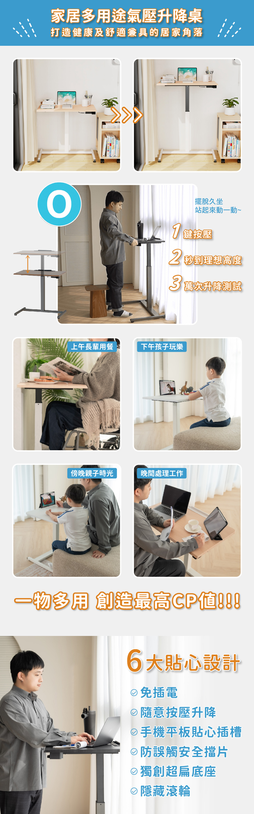 【KAKU健康生活】KA-4814 臺灣製造[好升氣][高桌]氣壓升降桌 多色可選