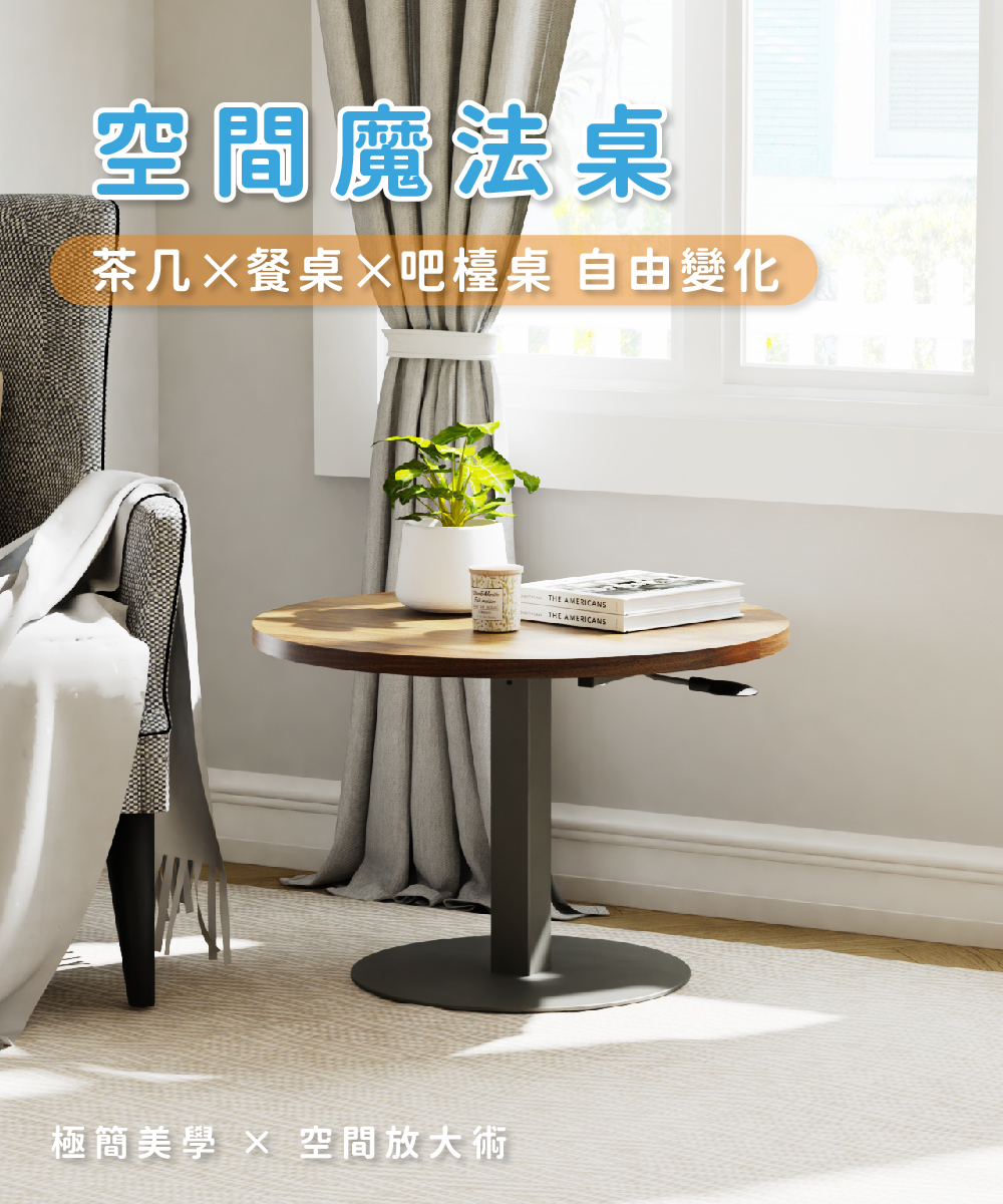 【KAKU健康生活】KA-4830 臺灣製造[魔法桌]氣壓升降茶几-矮桌-圓-70cm 石紋灰