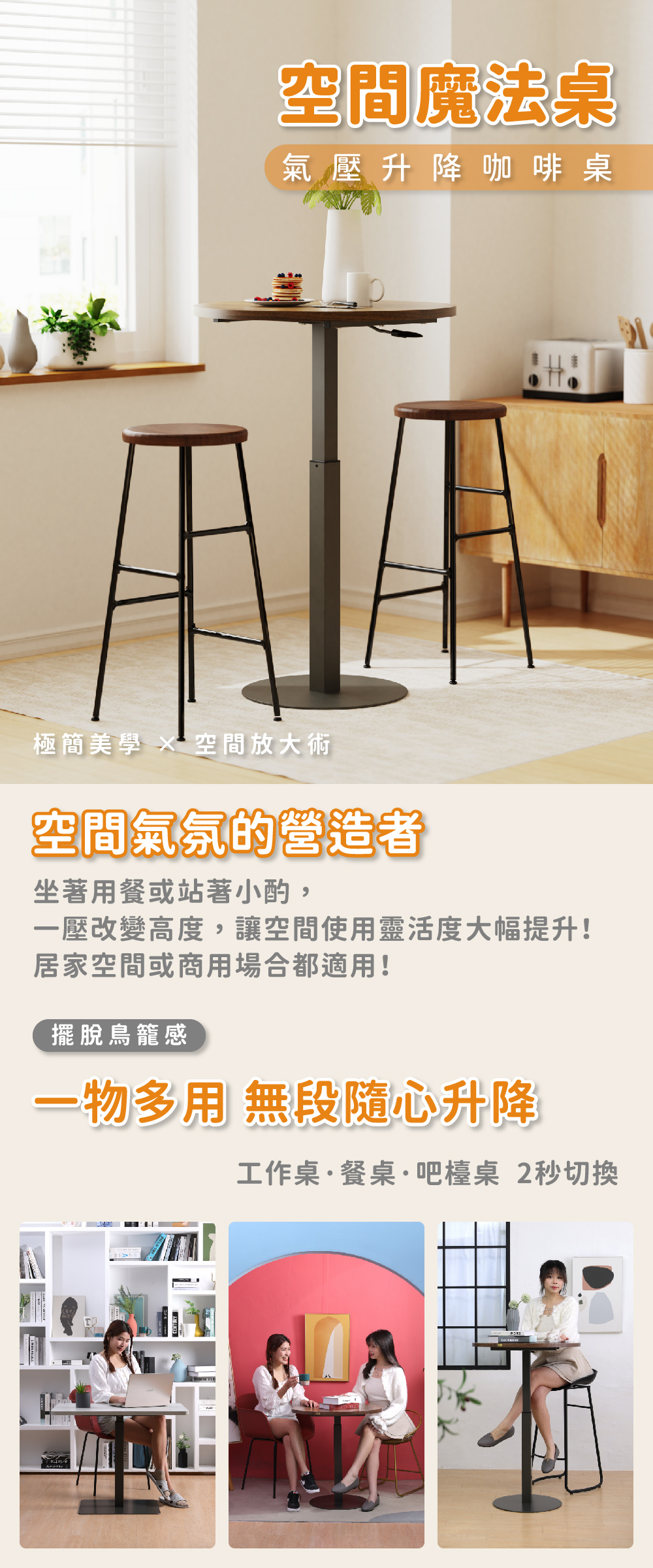 【KAKU健康生活】KA-4833 臺灣製造[魔法桌]氣壓升降咖啡桌-可愛圓桌 多色可選