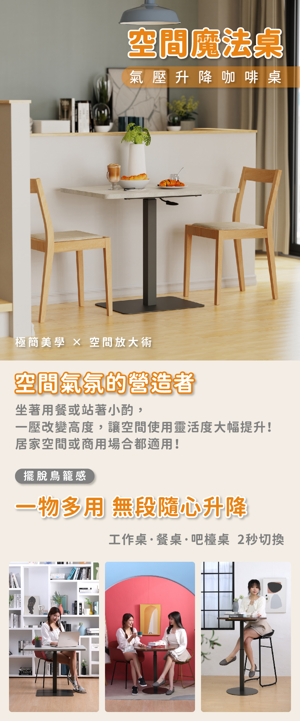 【KAKU健康生活】KA-4834 臺灣製造[魔法桌]氣壓升降咖啡桌-寬敞方桌 多色可選