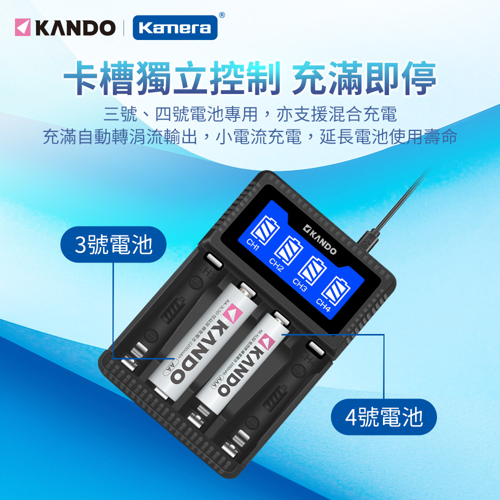 KANDO 3號 4號 充電電池 鎳氫 液晶顯示 四槽充電器 (C4)