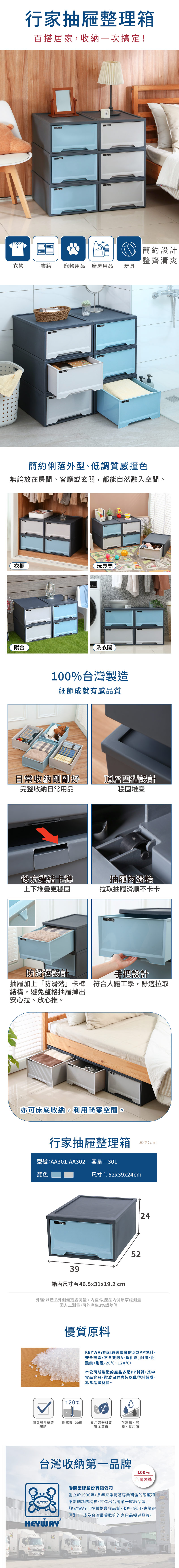 KEYWAY行家抽屜整理箱30L-藍