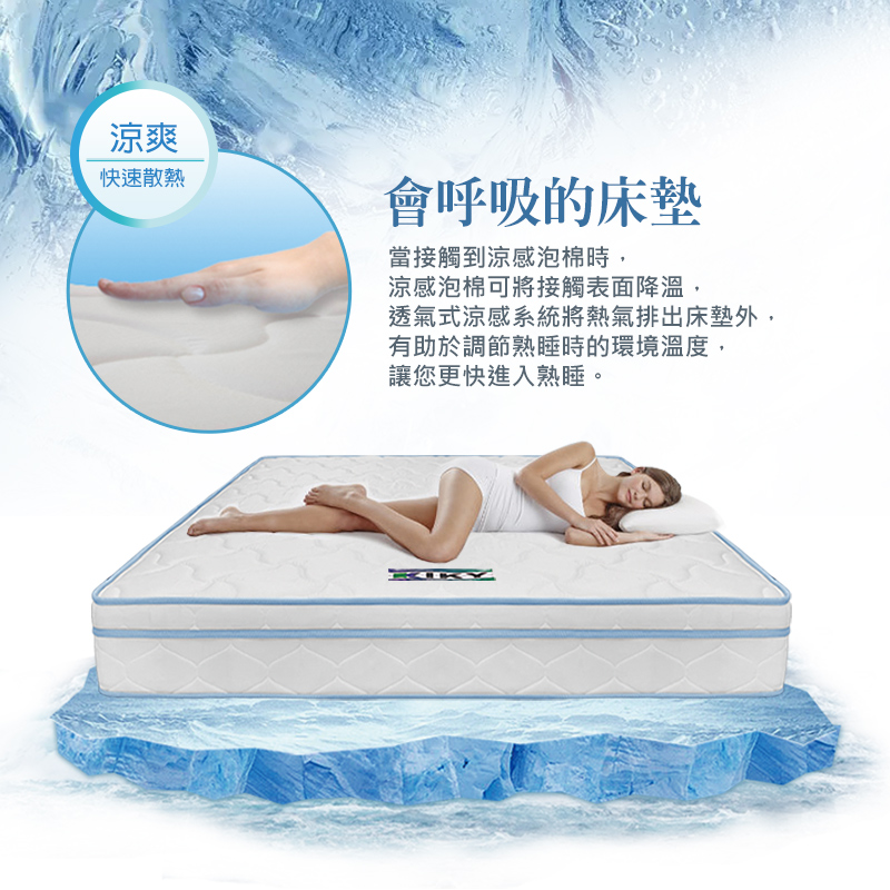 【KIKY】冰雪奇緣涼感三線蜂巢式獨立筒床墊3.5尺