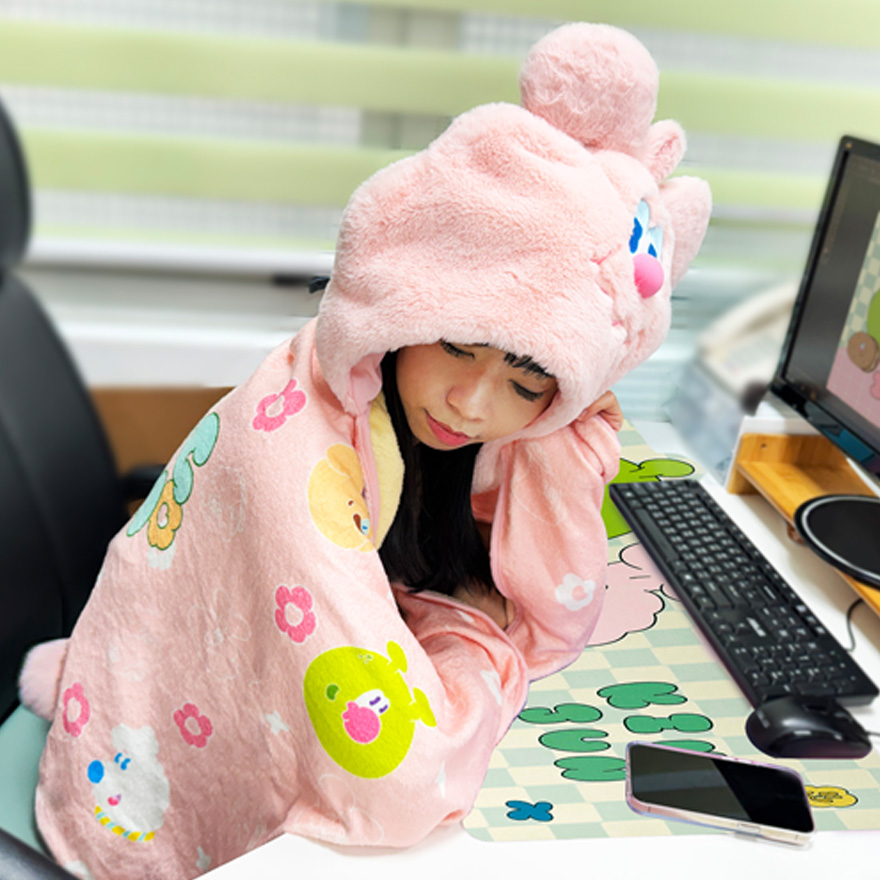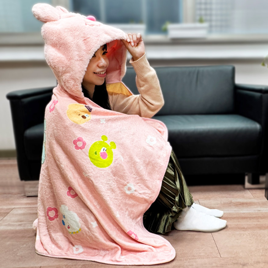 [九越]蠢兔造型連帽毛毯