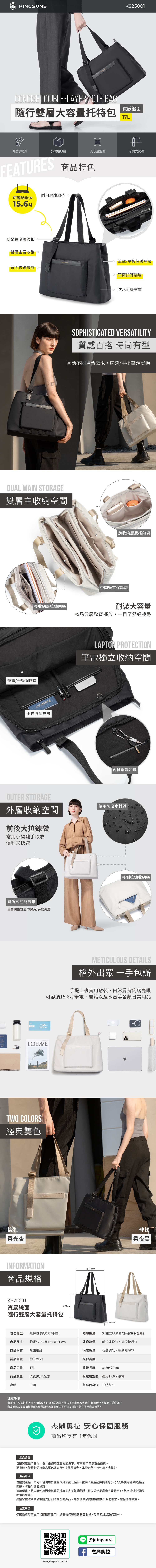 [杰鼎奧拉] KINGSONS|質感緞面-隨行雙層大容量托特包|防潑水材質|可容納15.6吋筆電