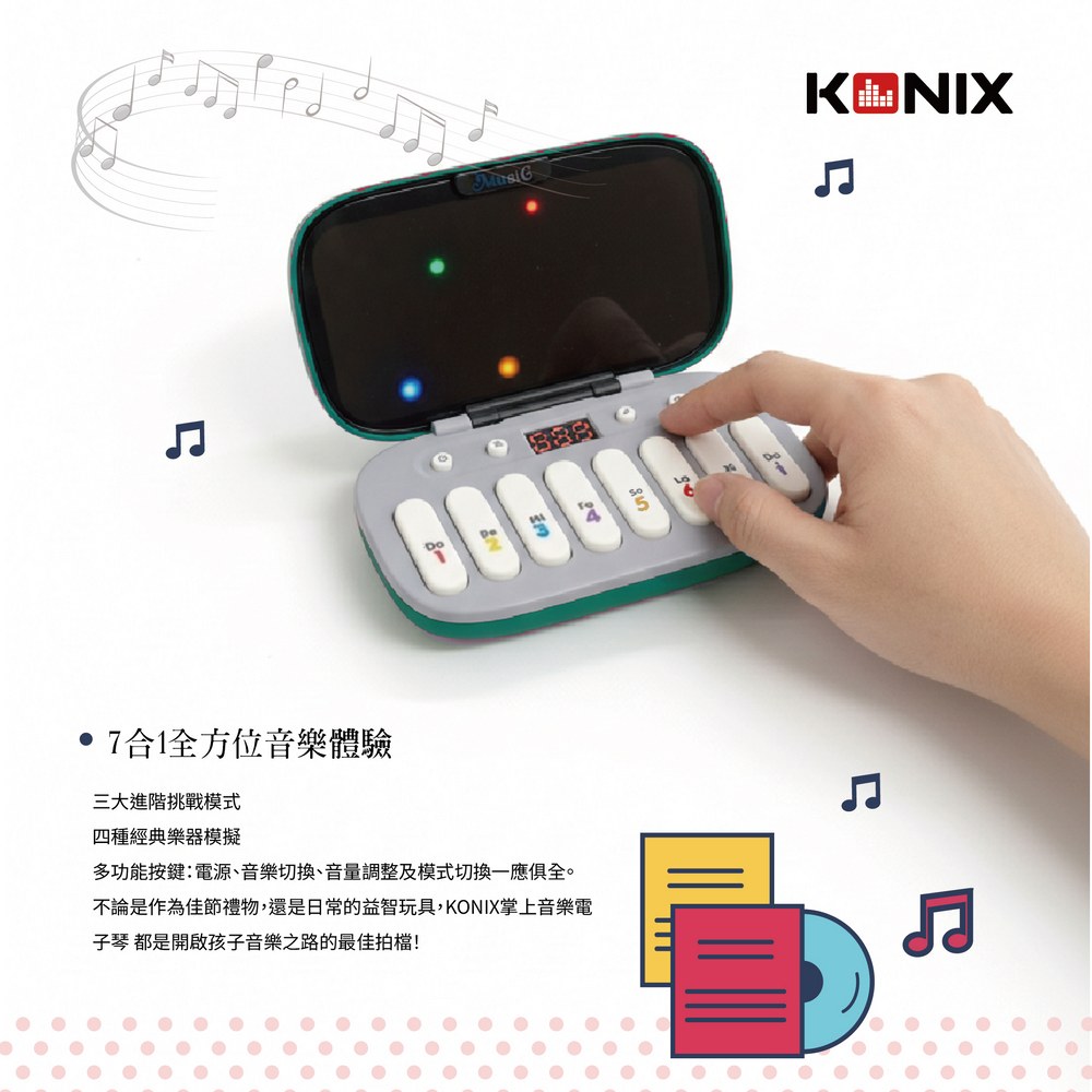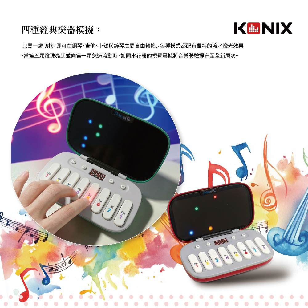 【複製】【KONIX】 掌上口袋琴 K8047 迷你電子琴 學習電子琴 兒童音樂玩具 七彩燈光琴 音樂禮物推薦-白色