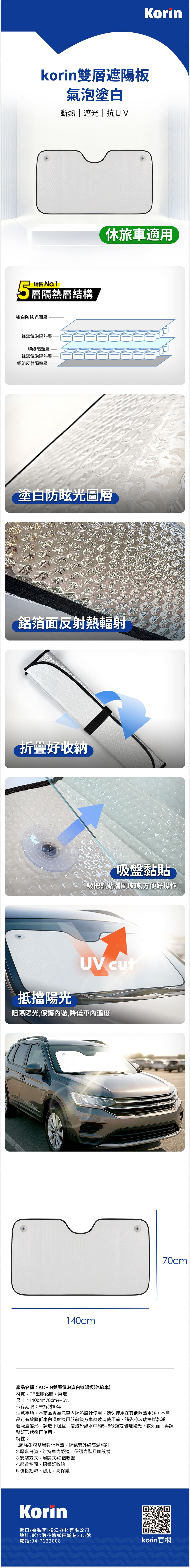 【汽車百貨】Korin雙層遮陽板(氣泡塗白)-休旅車型