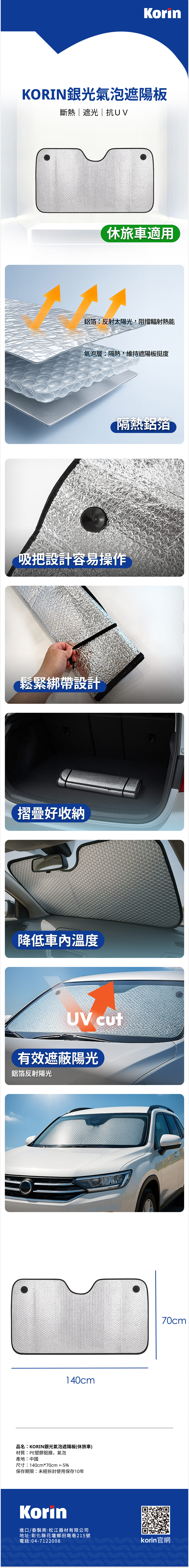 【汽車百貨】KORIN銀光氣泡遮陽板(休旅車)