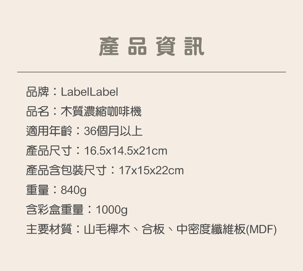 官方直營【Label Label】木質濃縮咖啡機-奶茶色