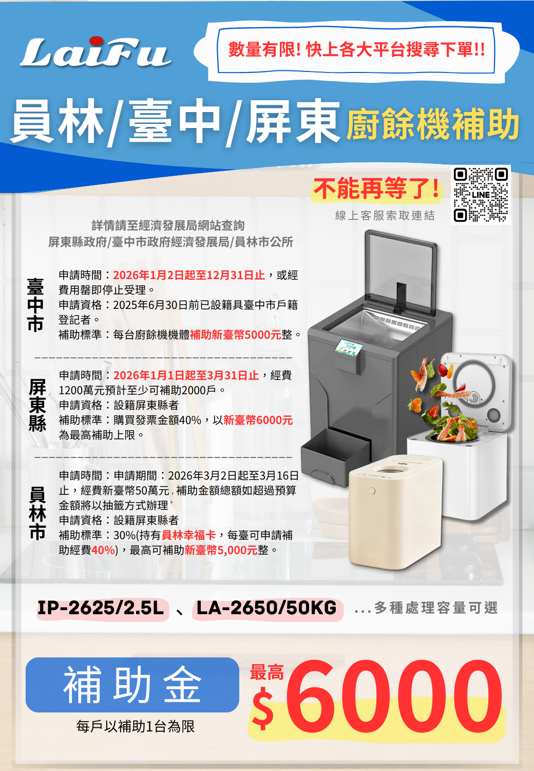 【組合包】LAIFU 廚餘機 IP-2625+九陽 高速調理果汁機 L19N-Y1W
