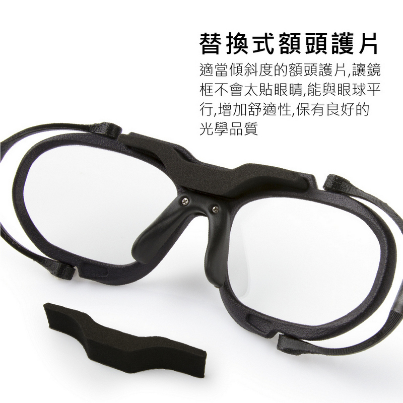 可裝配度數鏡片可戴在軍警空氣呼吸器面罩/防毒/漆彈面罩/雪鏡/安全帽/防護面罩密合性高,不易滑落側扣易拆,可以更換不同材質的織帶所有的配件都可以輕易拆下,更換新的