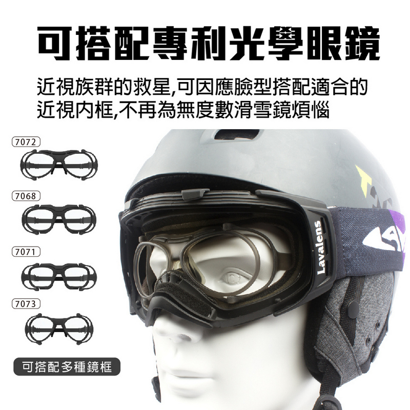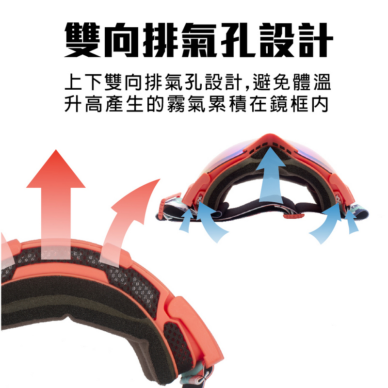 鏡片:Multy-coating,球狀片高規格雙層防霧片可快速換片活動織帶扣,適合各式滑雪安全帽5公分織帶寬,配戴更舒適穩定更穩固,不晃動.符合亞洲臉型,鼻子不灌風可以戴一般近視框
