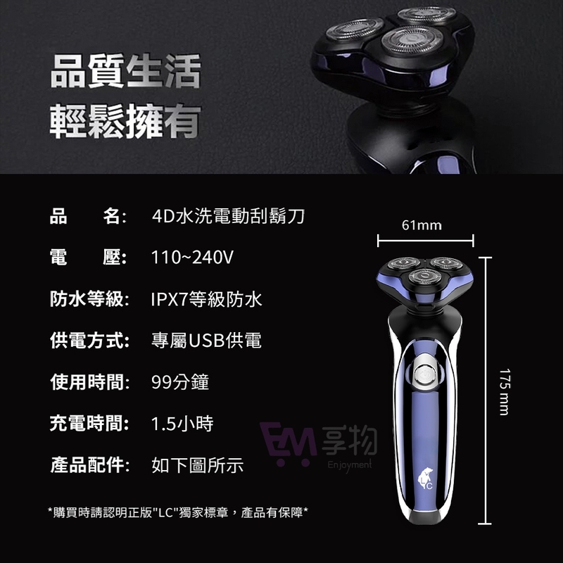 [LC生活科技]4D多功能電動刮鬍刀 全機可水洗 浮動三刀頭 充電刮鬍刀 刮鬍子電動 三刀頭刮鬍刀 電鬍刀 三頭刮鬍刀 男士刮鬍刀