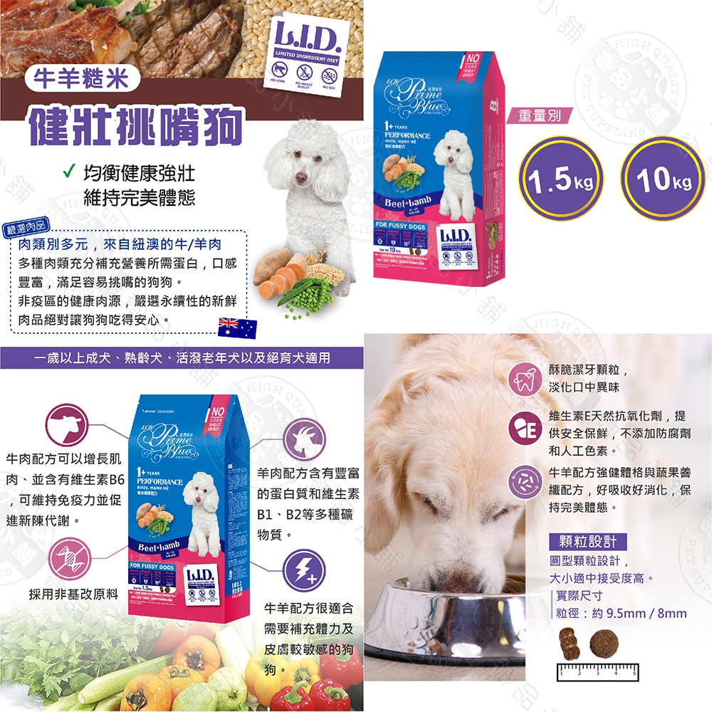 LCB藍帶廚坊狗糧 L.I.D.挑嘴系列 牛羊配方1.5kg