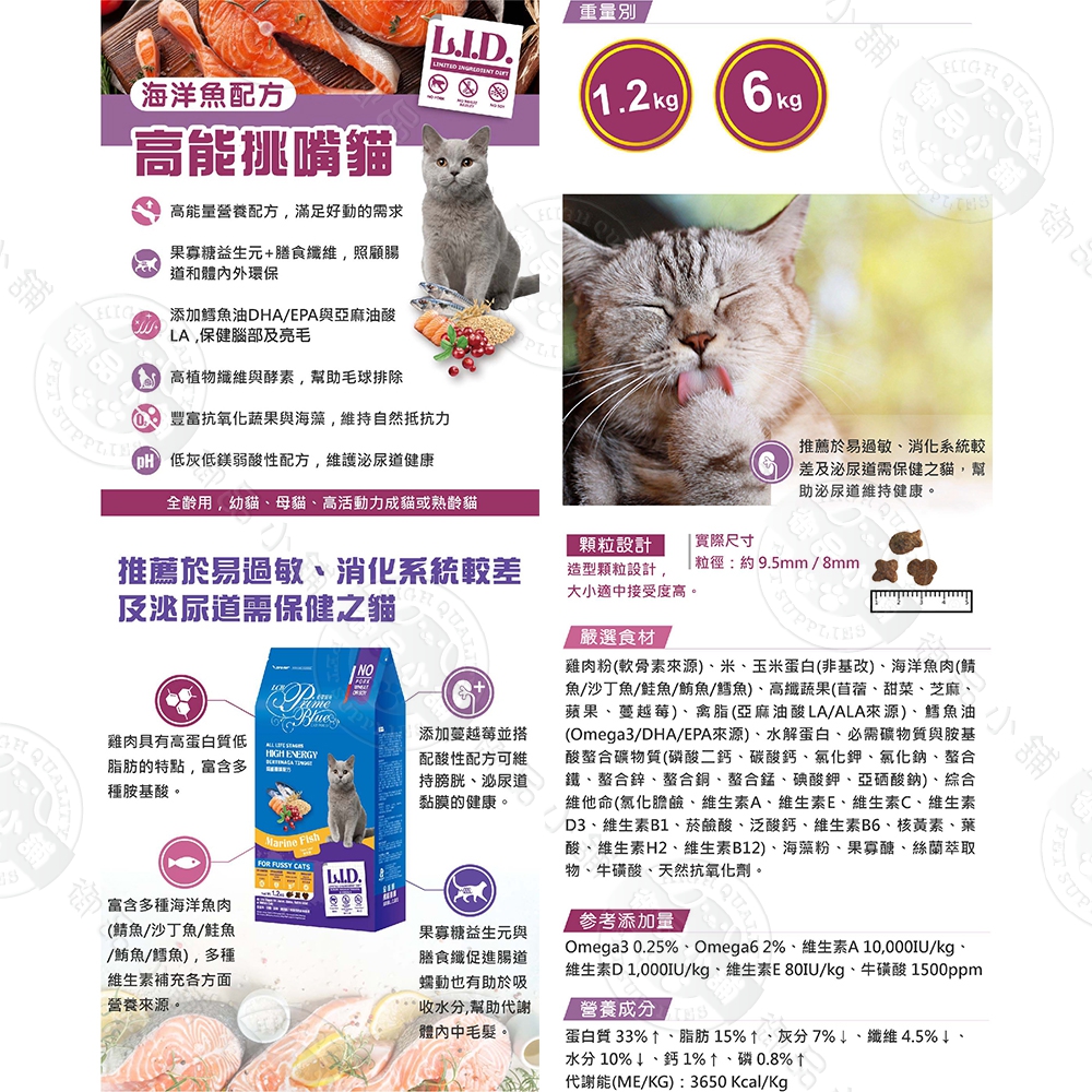 LCB藍帶廚坊貓糧 L.I.D.挑嘴系列 海洋魚配方6kg 經濟貓糧 愛心貓糧 浪浪飼料