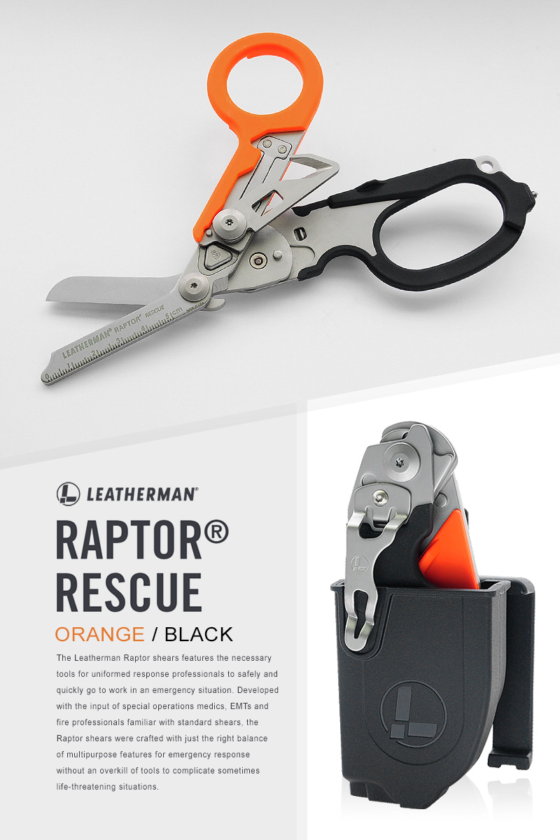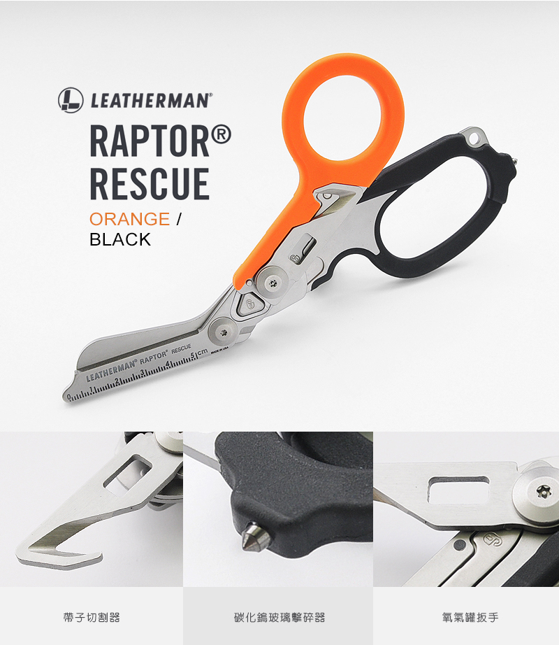 ※本產品說明,僅供參考,請勿作為正式採購招標規格,如有需要,請來電本公司洽詢相關業務人員。※以下原廠提供參考數據。品名:LEATHERMAN RAPTOR® RESCUE 多功能工具剪型號:#832170 (黑橘柄)剪刀刃長(±10%):1.9 in | 4.8 cm收闔長(±10%):5 in | 12.7 cm重量(±10%):160g(不含注塑成型聚合物收納套)功能:》420HC不鏽鋼剪刀》帶子切割器》尺(5cm)》氧氣罐扳手》軟金屬戒指切割器(例:純金或純銀戒指)》碳化鎢玻璃擊碎器特點:》不鏽鋼》25年保固》可更換的口袋夾》玻璃填充尼龍握柄》繫繩孔》MOLLE兼容的注塑成型聚合物收納套※未滿18歲 兒童及少年,請勿購買刀械。