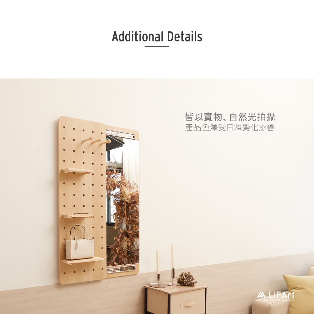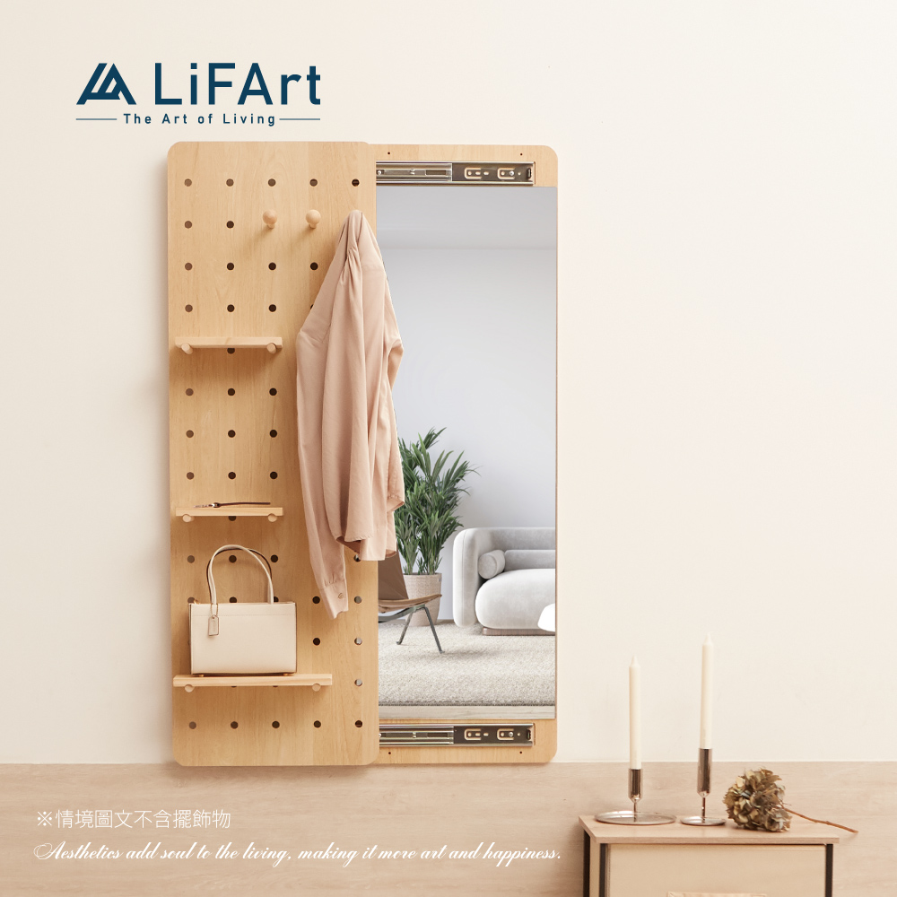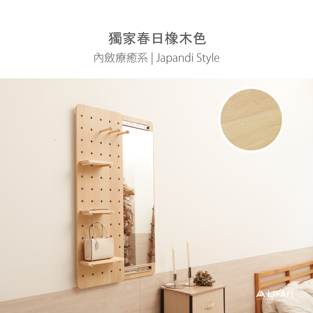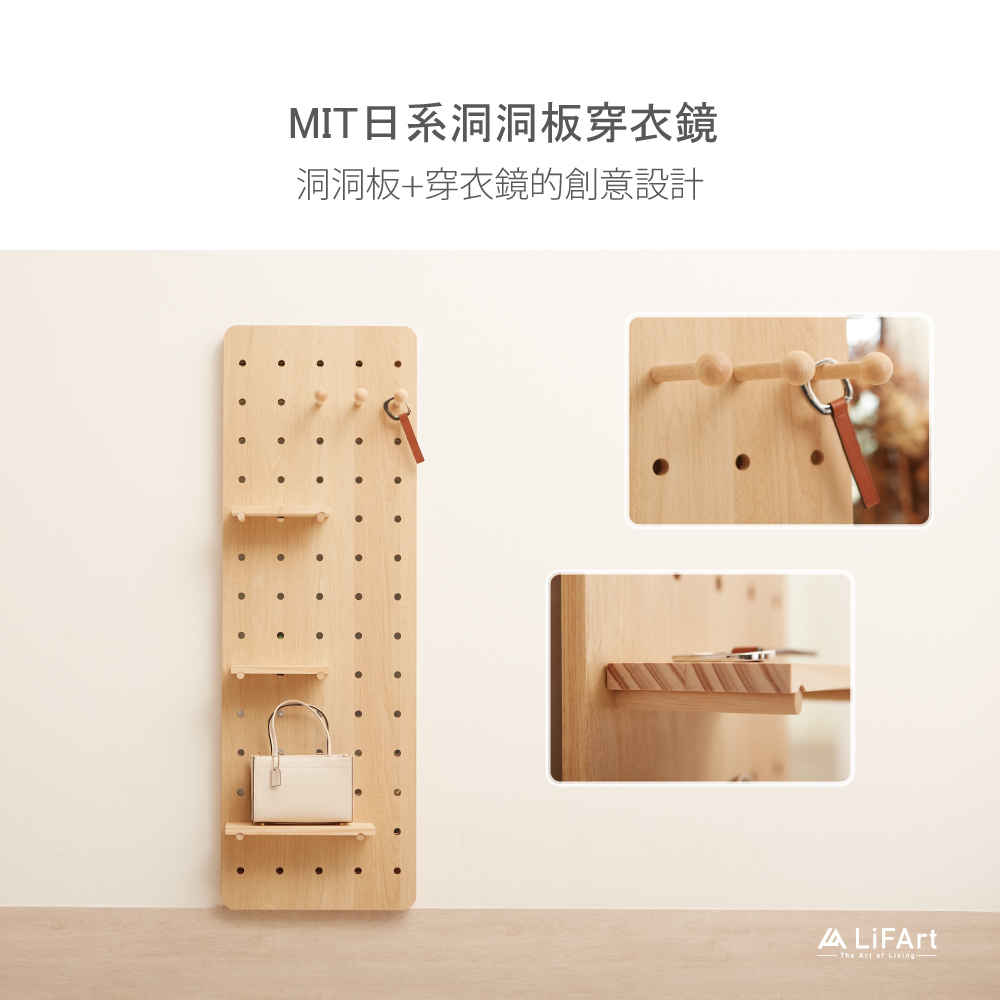 【LiFArt】MIT日系洞洞板壁掛式穿衣鏡-春日橡木色