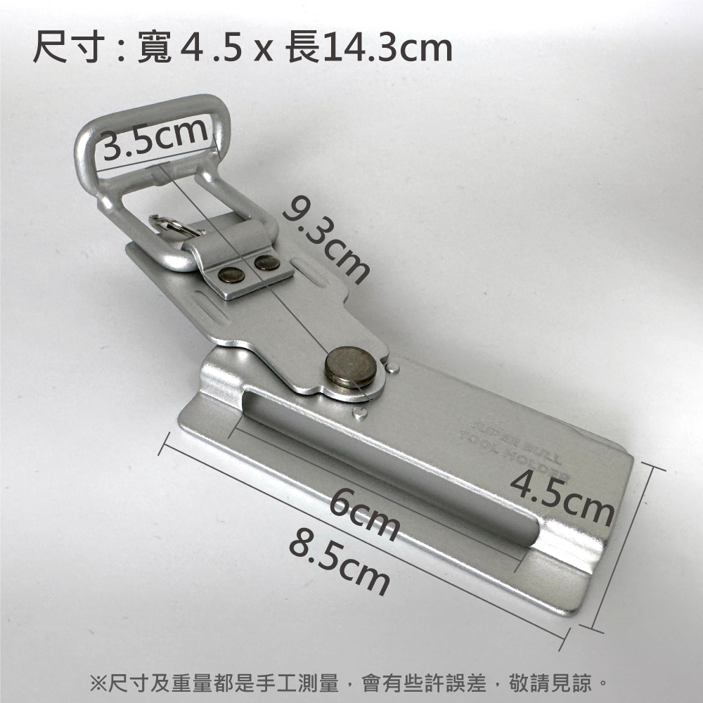 名稱 : 超輕量鋁合金掛勾-可動式電動起子掛架-小型號 : SBK-AKS03重量 : 50g推薦使用工具 : 電動起子、電鑽