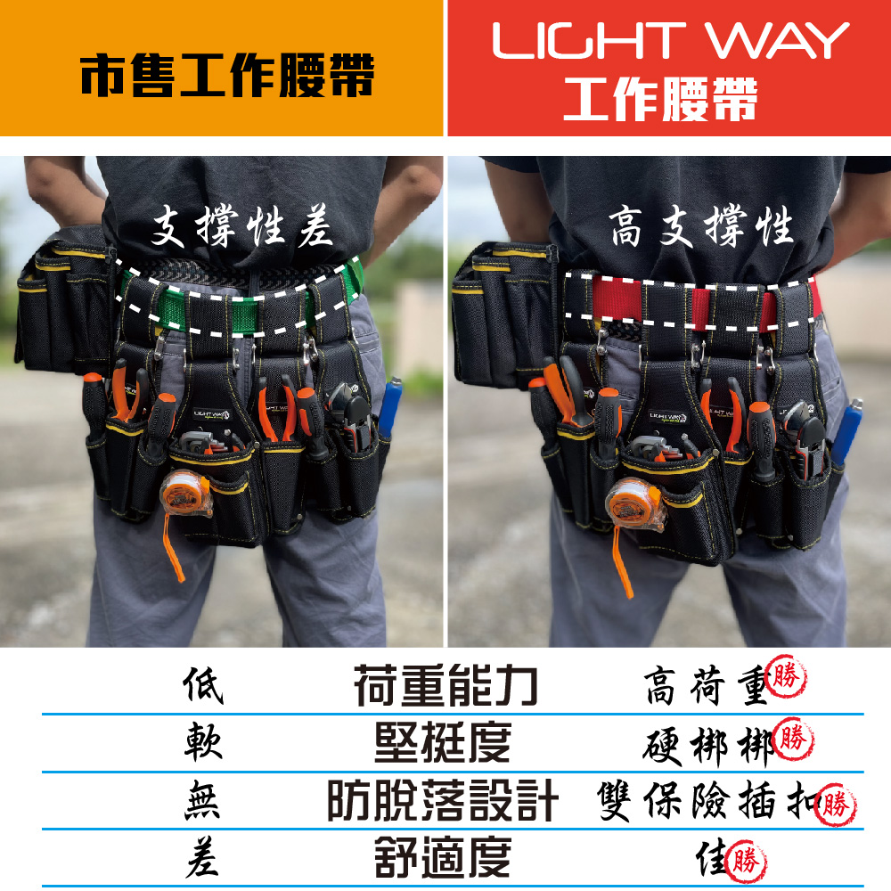 商品名稱: LIGHT WAY 鋁合金扣 雙保險高剛性工作腰帶 (L)