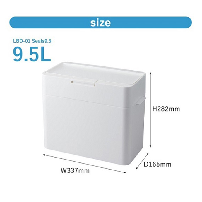 商品規格容量 : 9.5公升 尺寸 : 寬33.7× 長16.5 × 高28.2 CM重量 : 1.1 KG產地 : 日本材質 : 本體、蓋子、按鍵 : pp材質橡膠密封 : 硅樹脂彈簧 : 不鏽鋼備註:★購買2個以上請選宅配