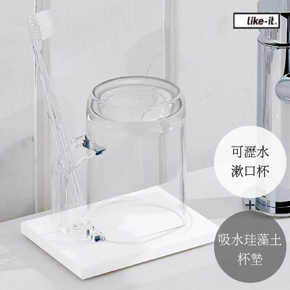 【this-this】日本Like-it|可瀝水漱口杯及吸水珪藻土杯墊組