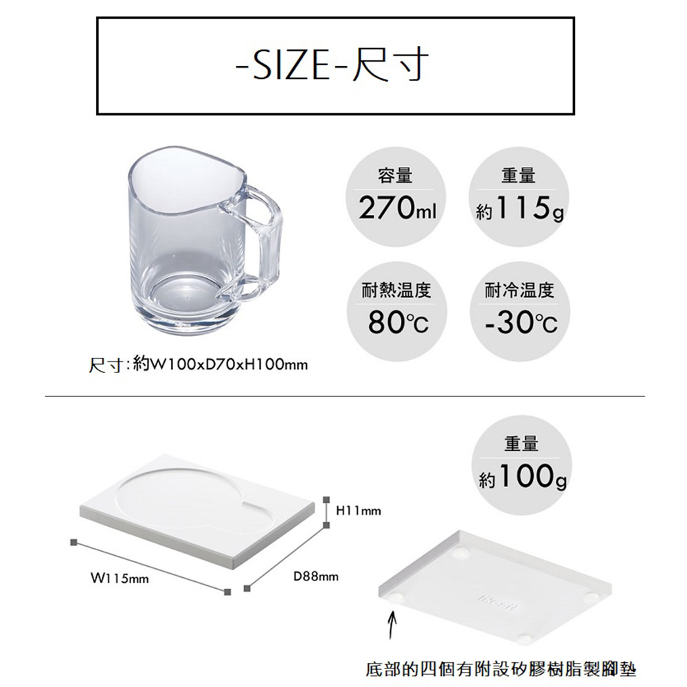 商品規格【瀝水漱口杯】尺寸:約寬10×長7.2×高10cm素材・材質:AS樹脂原產國:日本容量:約270ml耐熱温度:80度/耐冷温度:-80度