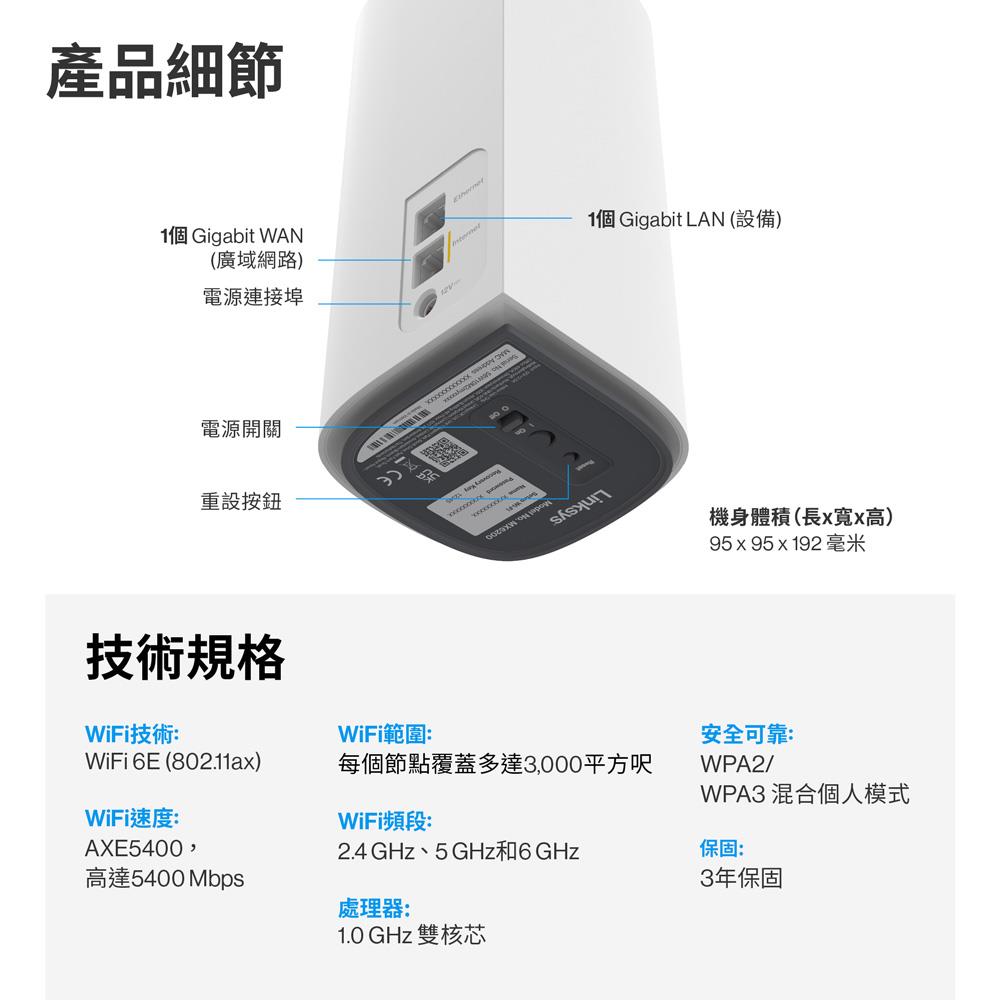昌運監視器 Linksys MX6201-AH VelopProAXE5400 三頻無線網狀路由器單入(一入) 1入