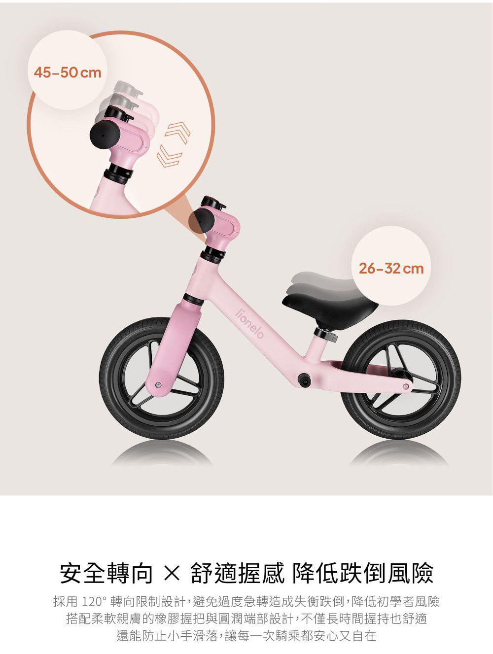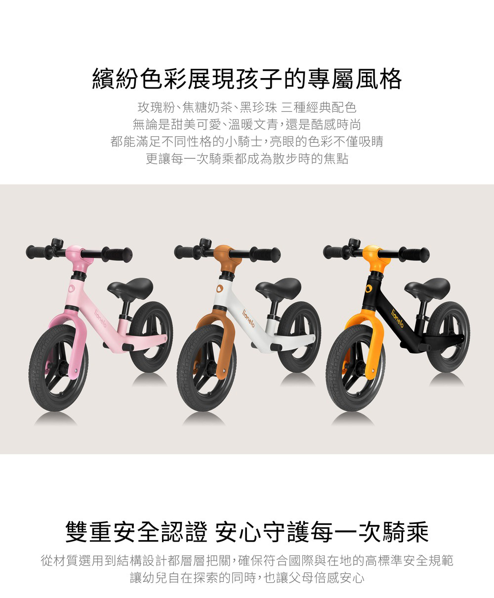 超輕量設計僅2.3kg,讓幼兒輕鬆操控、爸媽外出方便攜帶。車把與座椅皆可依身高調整,陪伴幼兒一路成長。高品質PU耐磨免充氣輪胎,車輪內部搭載高規格ABEC-7培林軸承,能有效降低阻力,提升滑行流暢度,搭載120°限轉設計加強騎乘安全。滑步車能有效培養平衡感、協調力與肌肉發展,是學習騎乘腳踏車前的重要階段。