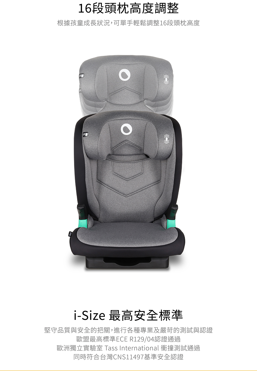 ISOFIX/安全帶兩用,安裝簡便且穩固,不挑車款。3段傾斜角度+16段頭枕高度調整,適應寶寶成長需求。堅固耐用材質,保障乘坐安全,是爸媽安心選擇。通過國內外雙重安全測試。