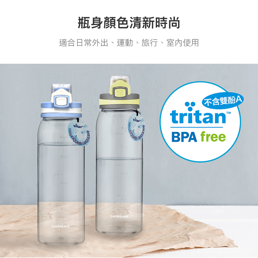 樂扣優質時尚彈蓋水壺900ml-Tritan綠
