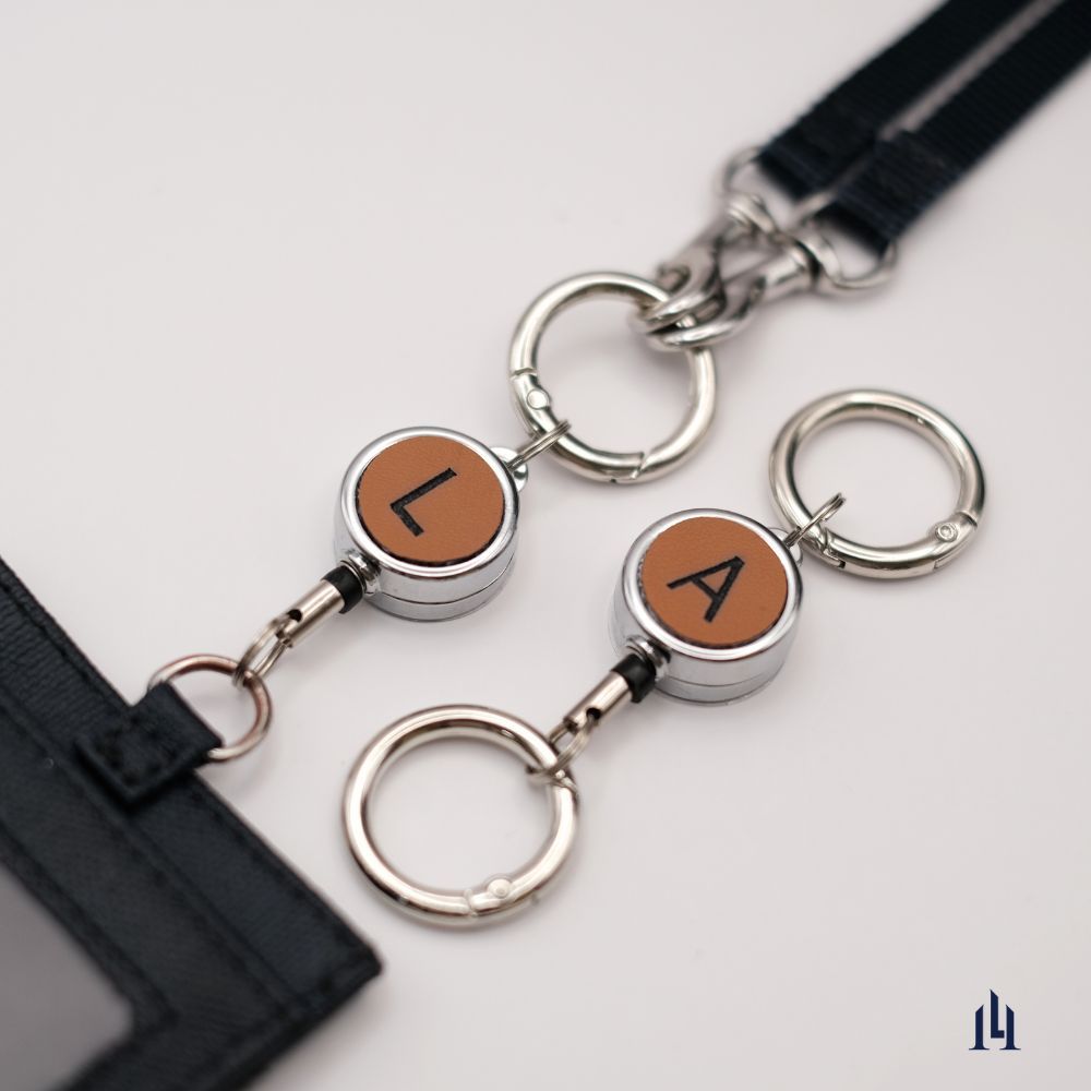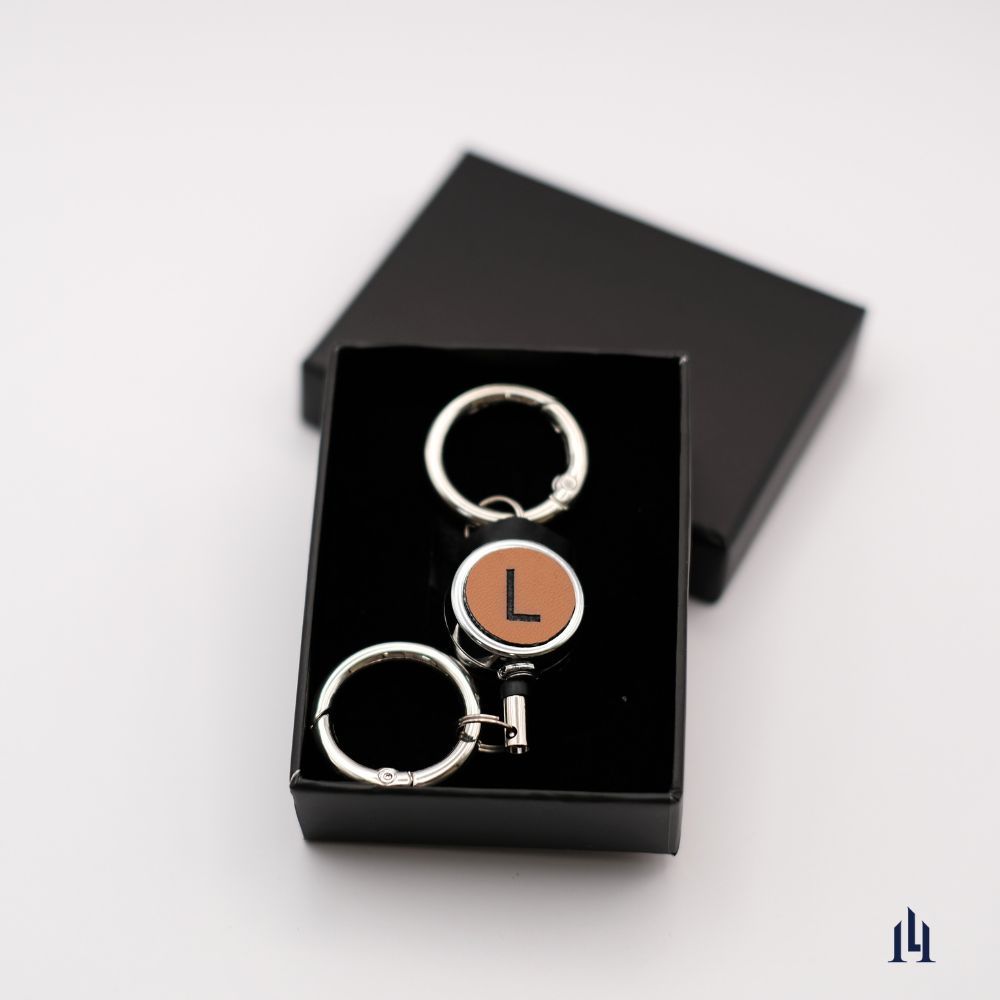 [LOGINHEART]素食皮革.客製英文字母雷雕伸縮扣 台灣製/雷射雕刻/證件伸縮/鑰匙圈 焦糖棕色 純素