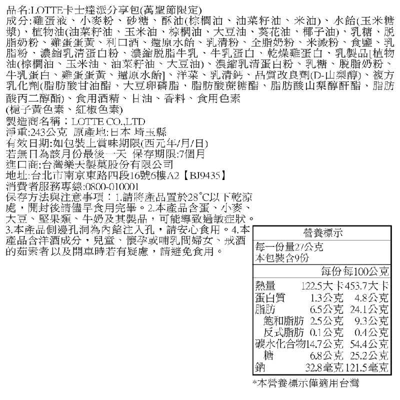LOTTE卡士達派分享包(萬聖節限定)