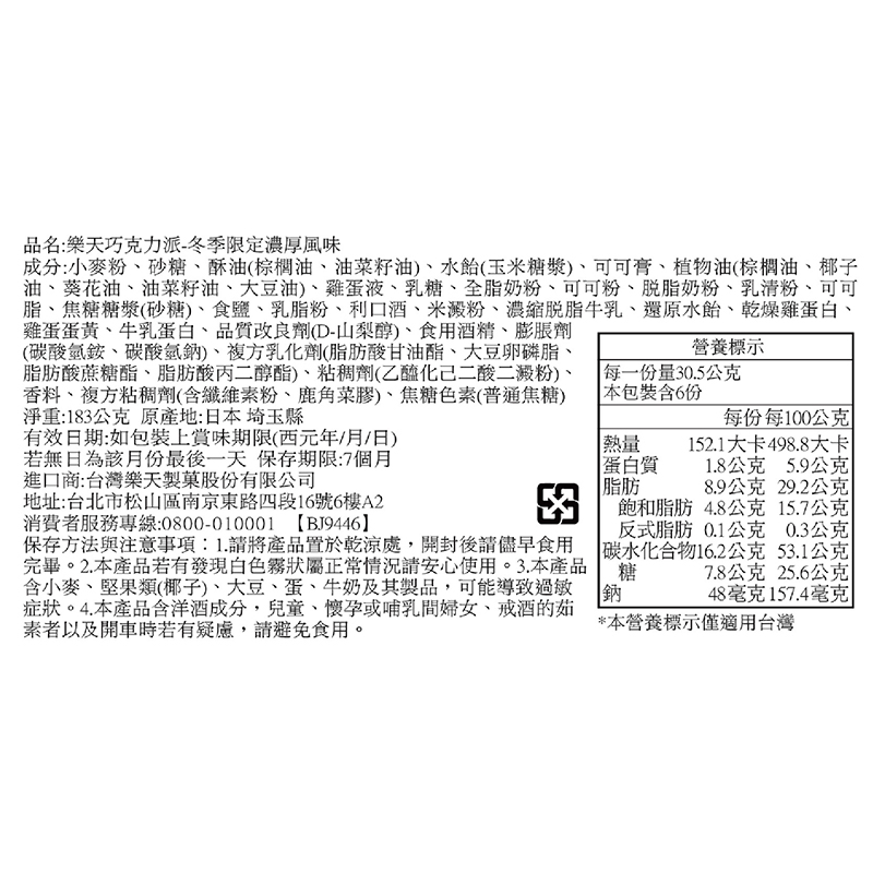 樂天巧克力派-冬季限定濃厚風味