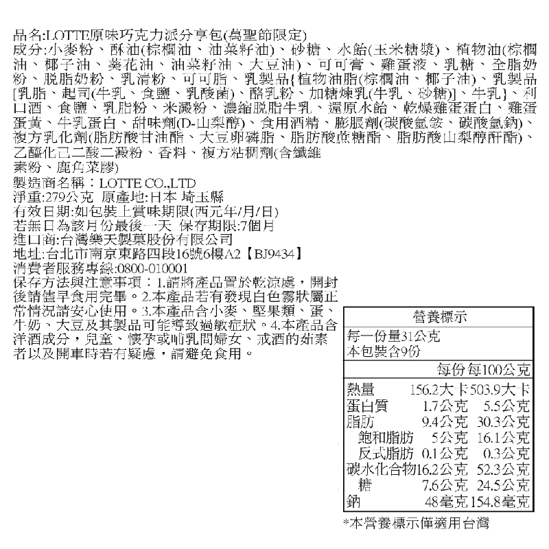 LOTTE原味巧克力派分享包(萬聖節限定)