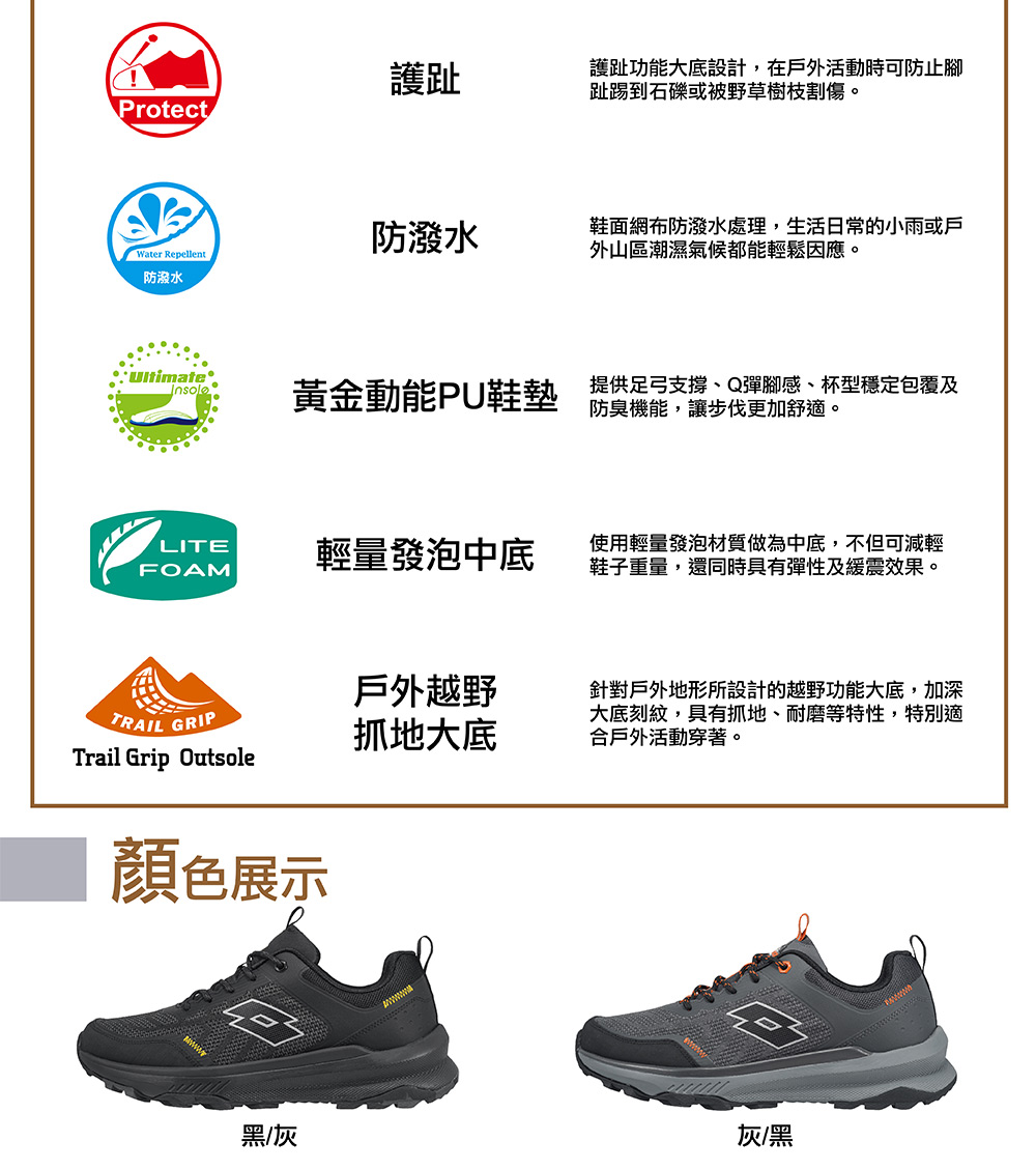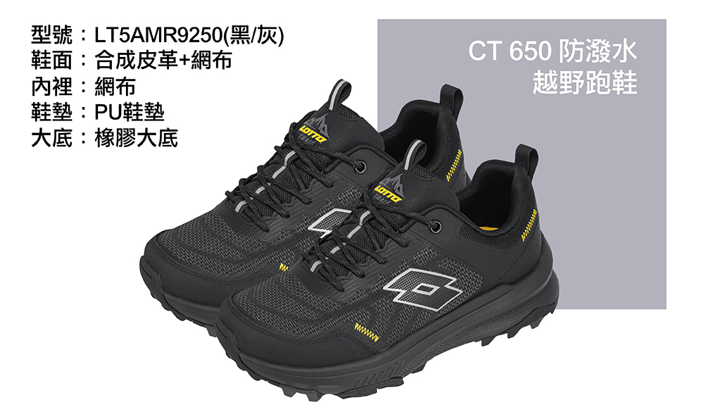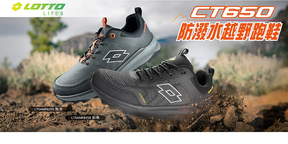 LOTTO男防潑水越野跑鞋-黑26