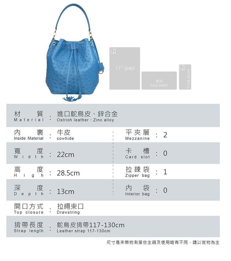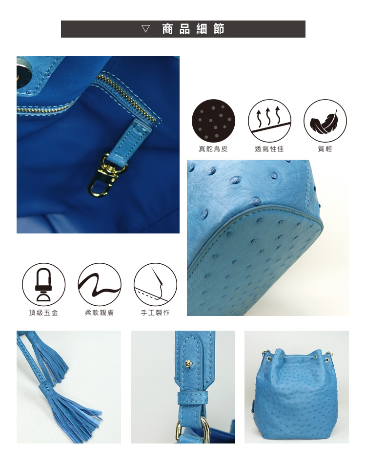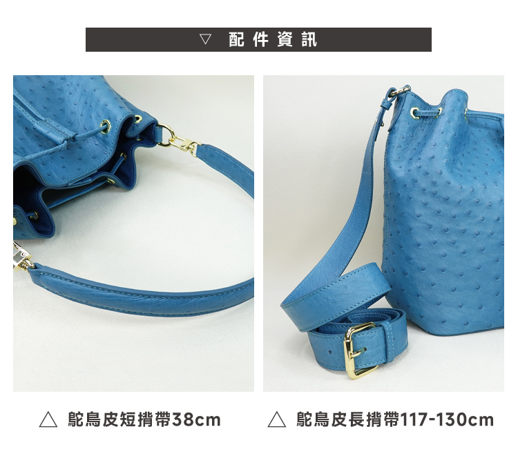 ※鴕鳥皮屬於天然珍稀皮革,每一只包都有獨特的天然動物紋路