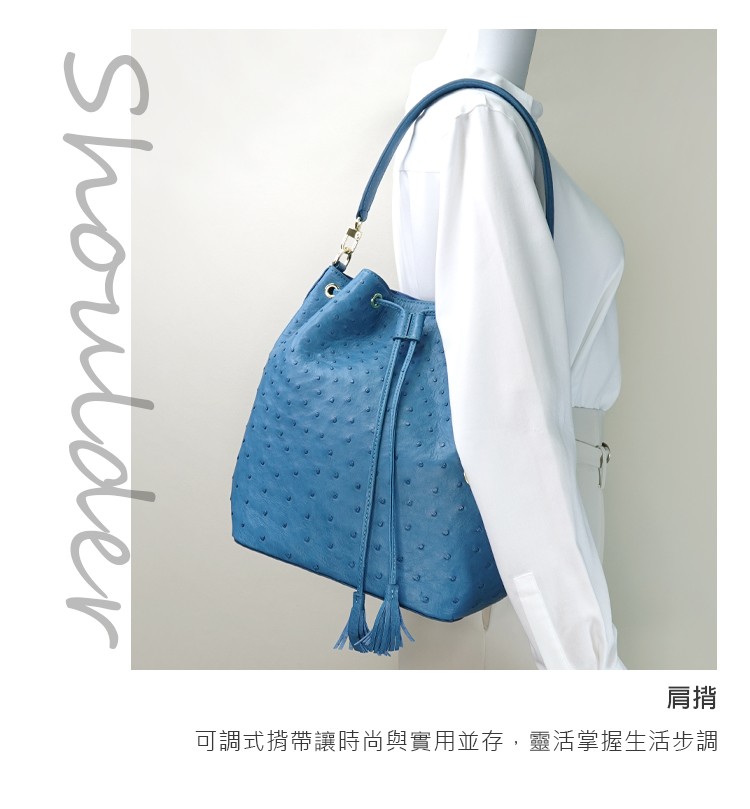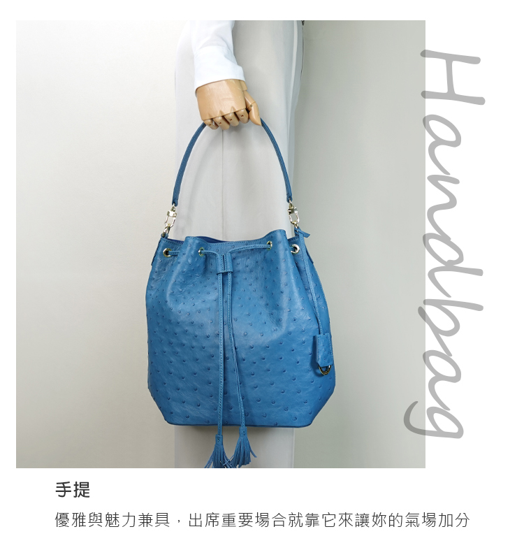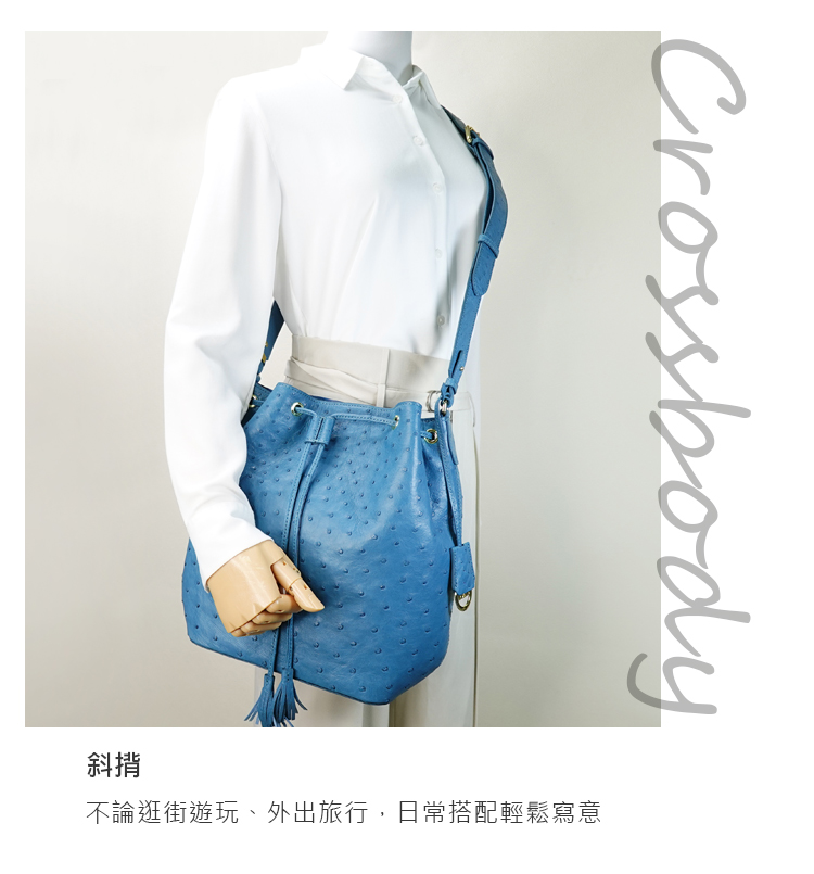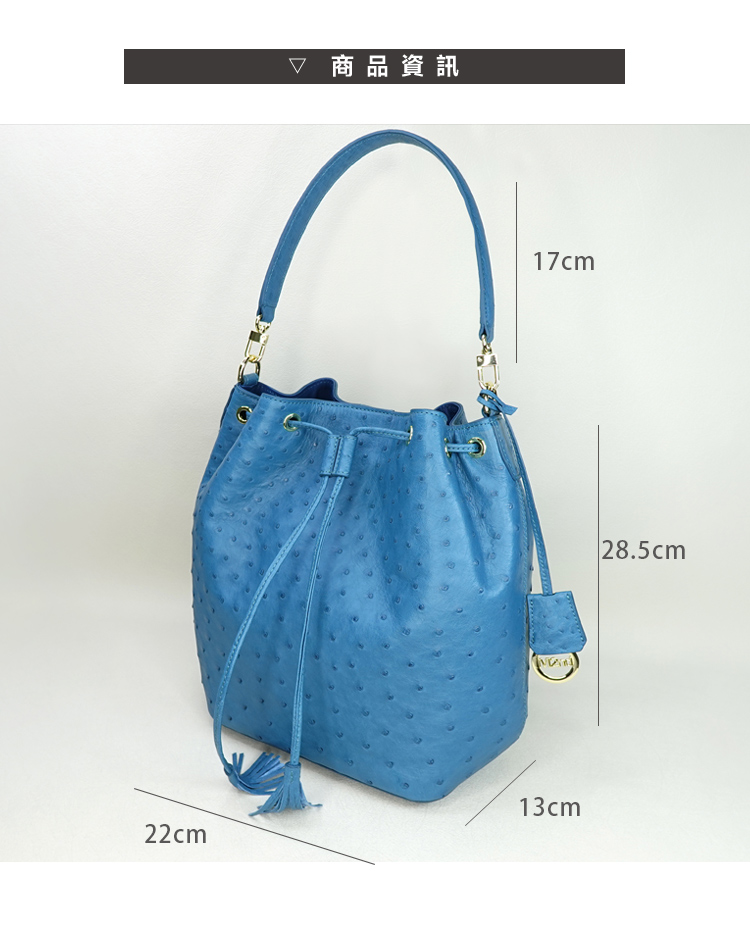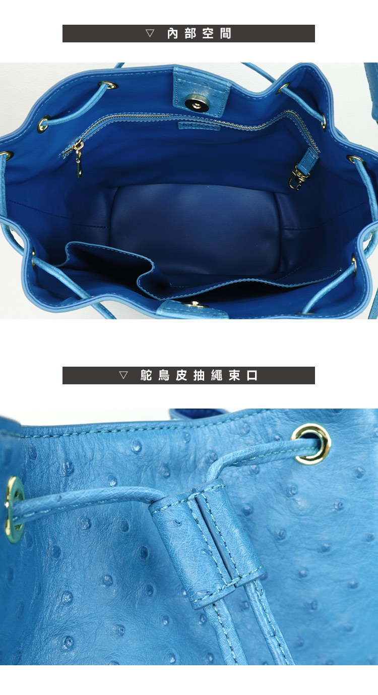 【M2nd】珂米汀鴕鳥皮通勤大水桶包(土耳其藍-T9428A)