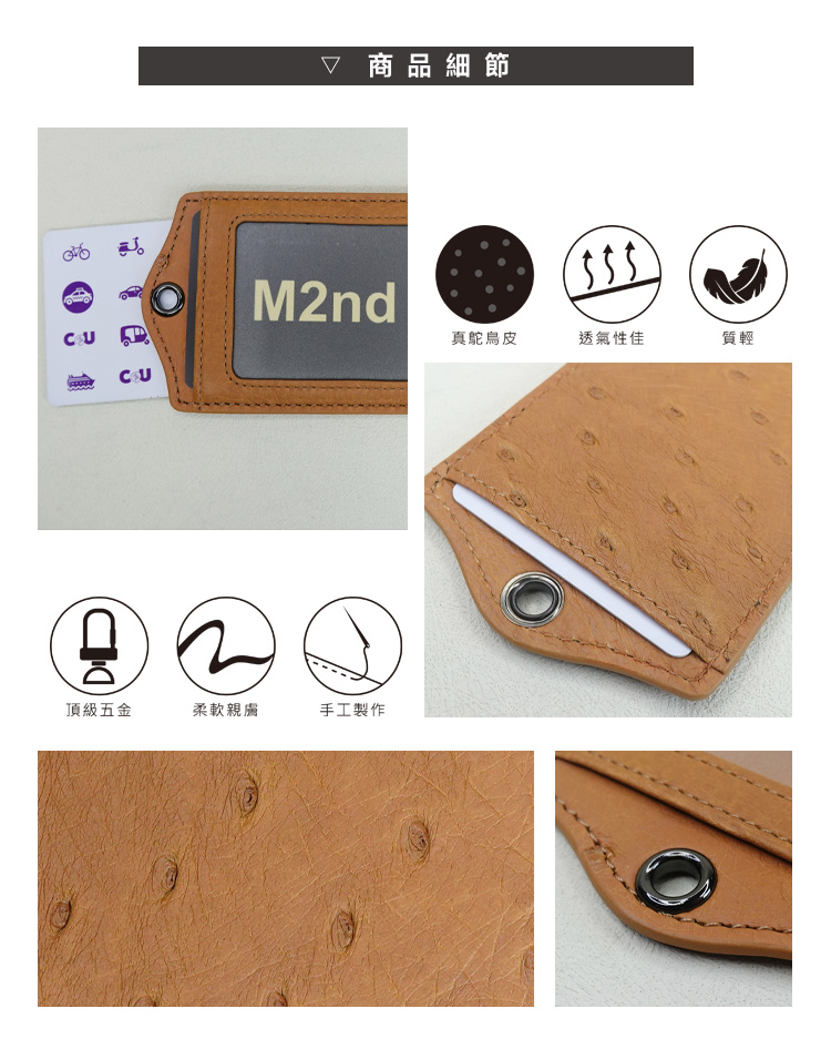 【M2nd】柯蜜頓鴕鳥皮通勤組輕薄長夾/證件套(駝-T65AT07A)
