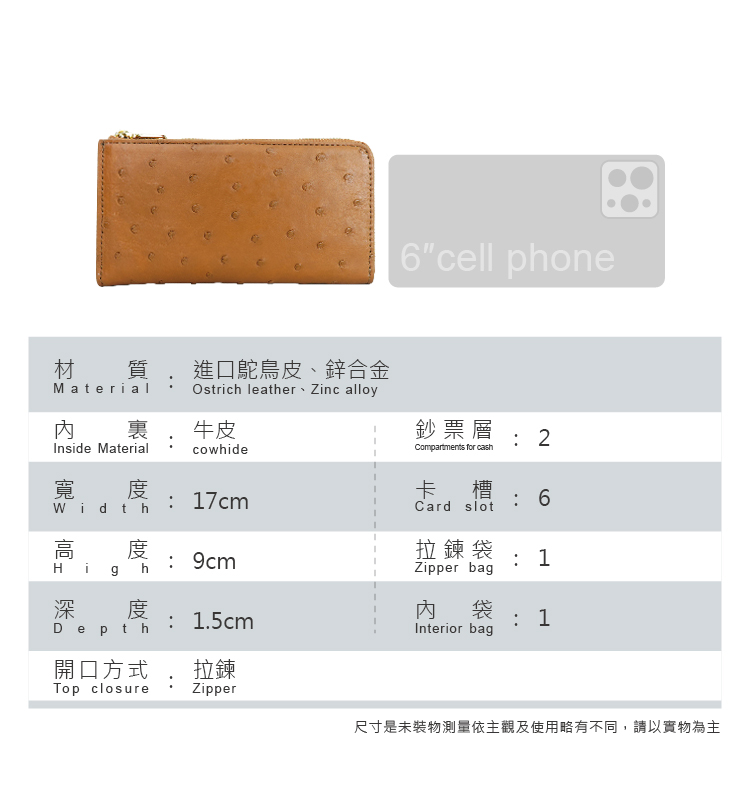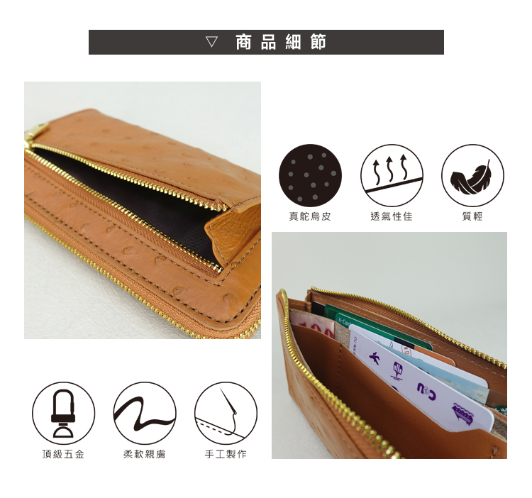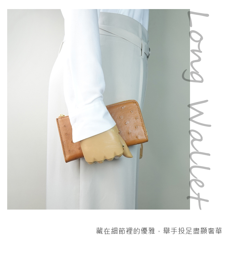 ※鴕鳥皮屬於天然珍稀皮革,每一只包都有獨特的天然動物紋路