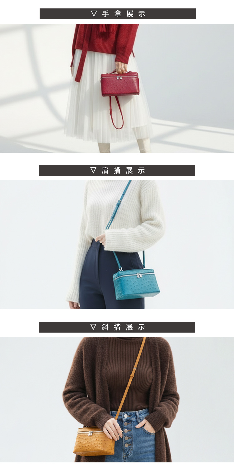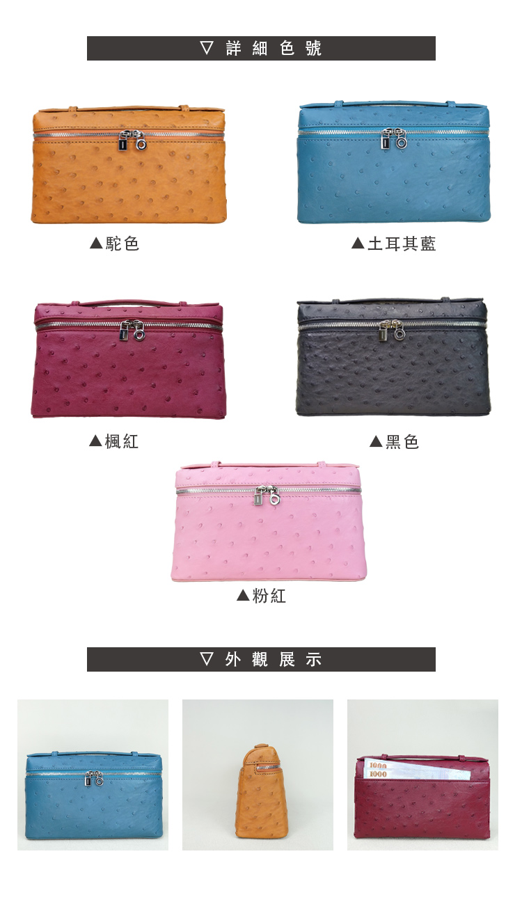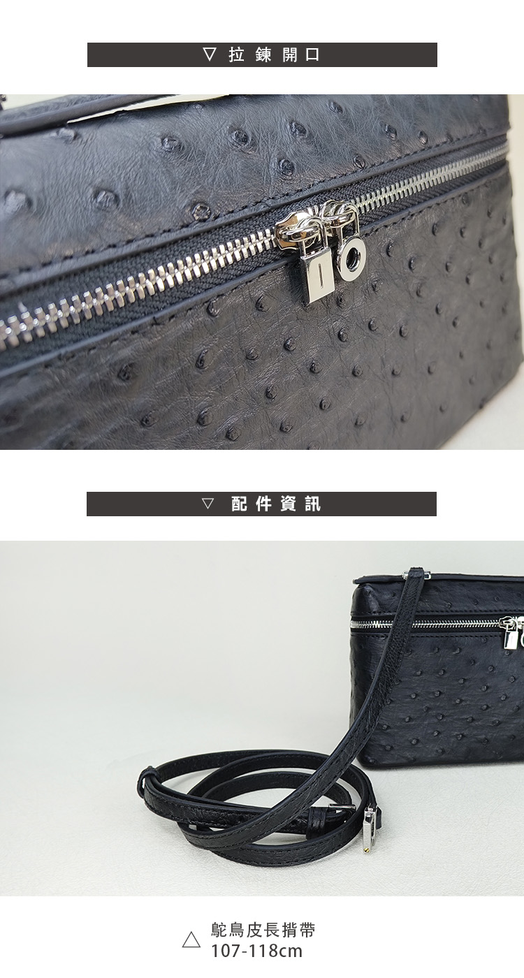 ※鴕鳥皮/鱷魚皮屬於天然珍稀皮革,每一只包都有獨特的天然動物紋路
