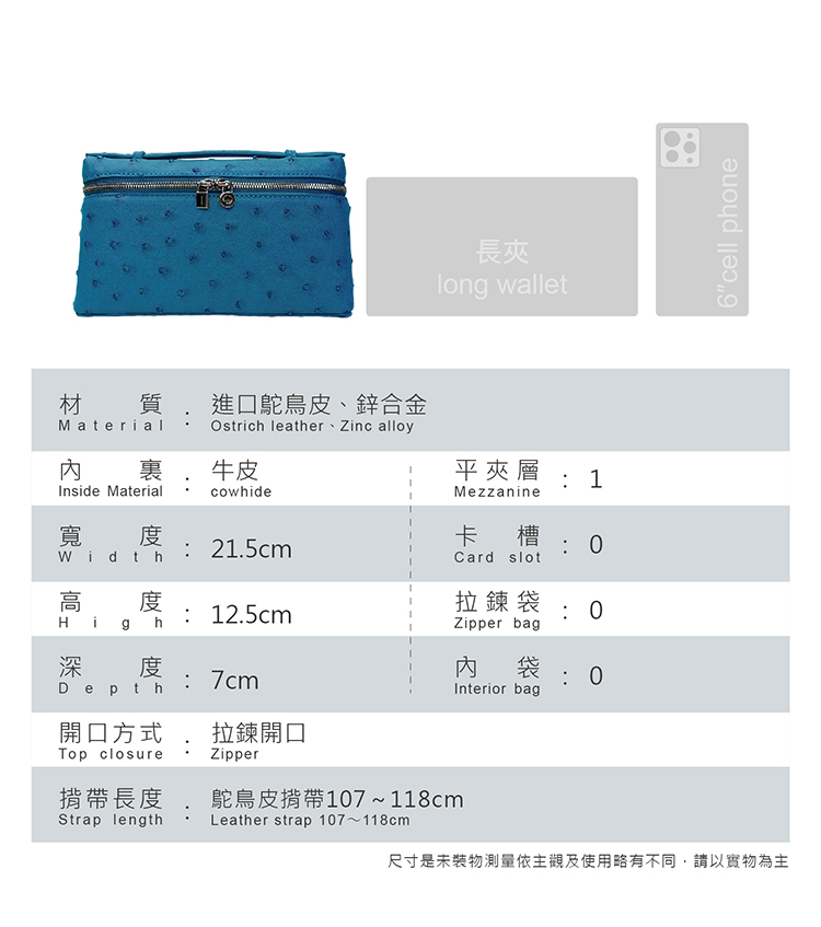 材質:進口鴕鳥皮+五金扣環