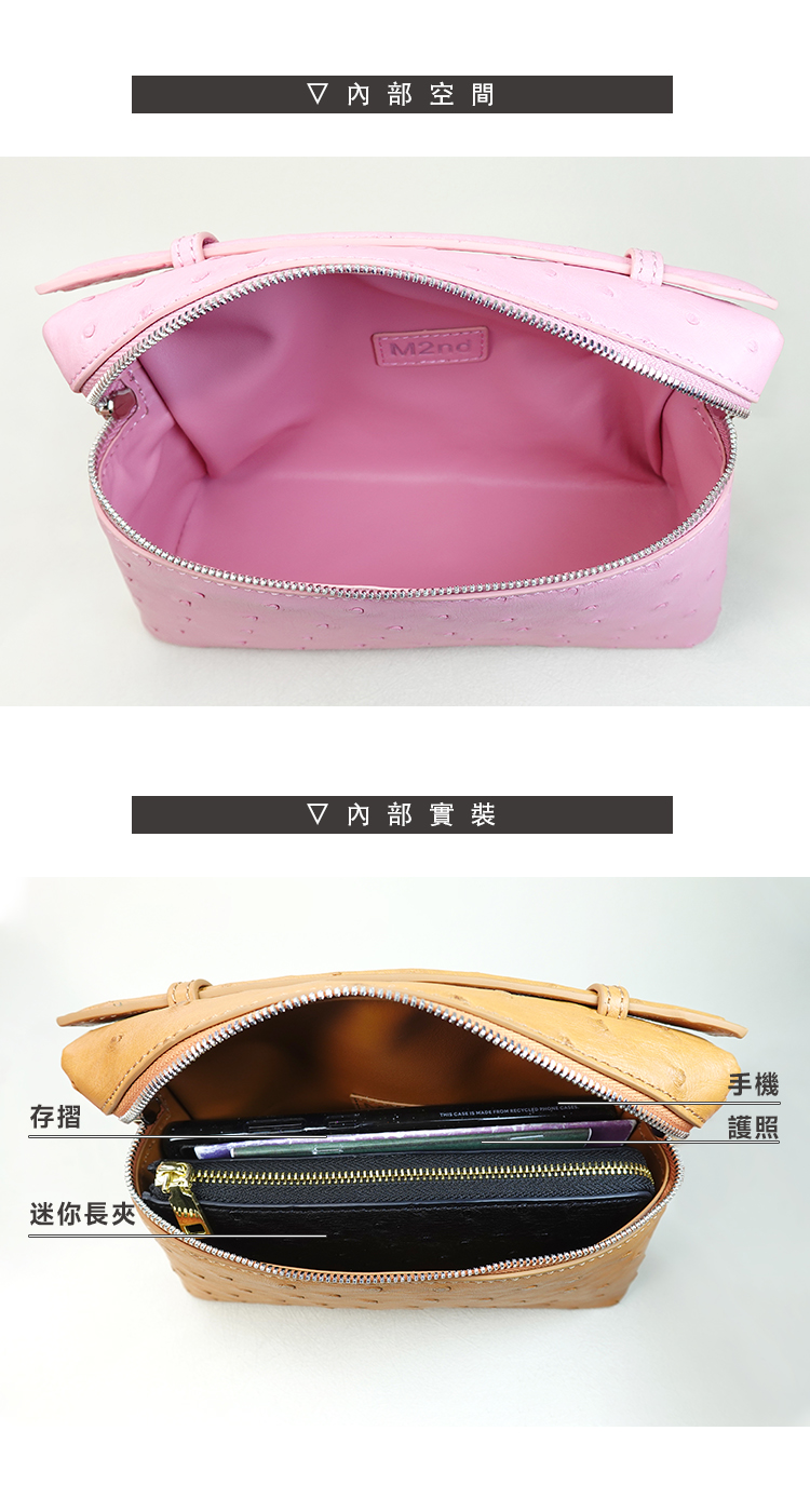 【M2nd】輕旅必備鴕鳥皮隨身包(T9387A)